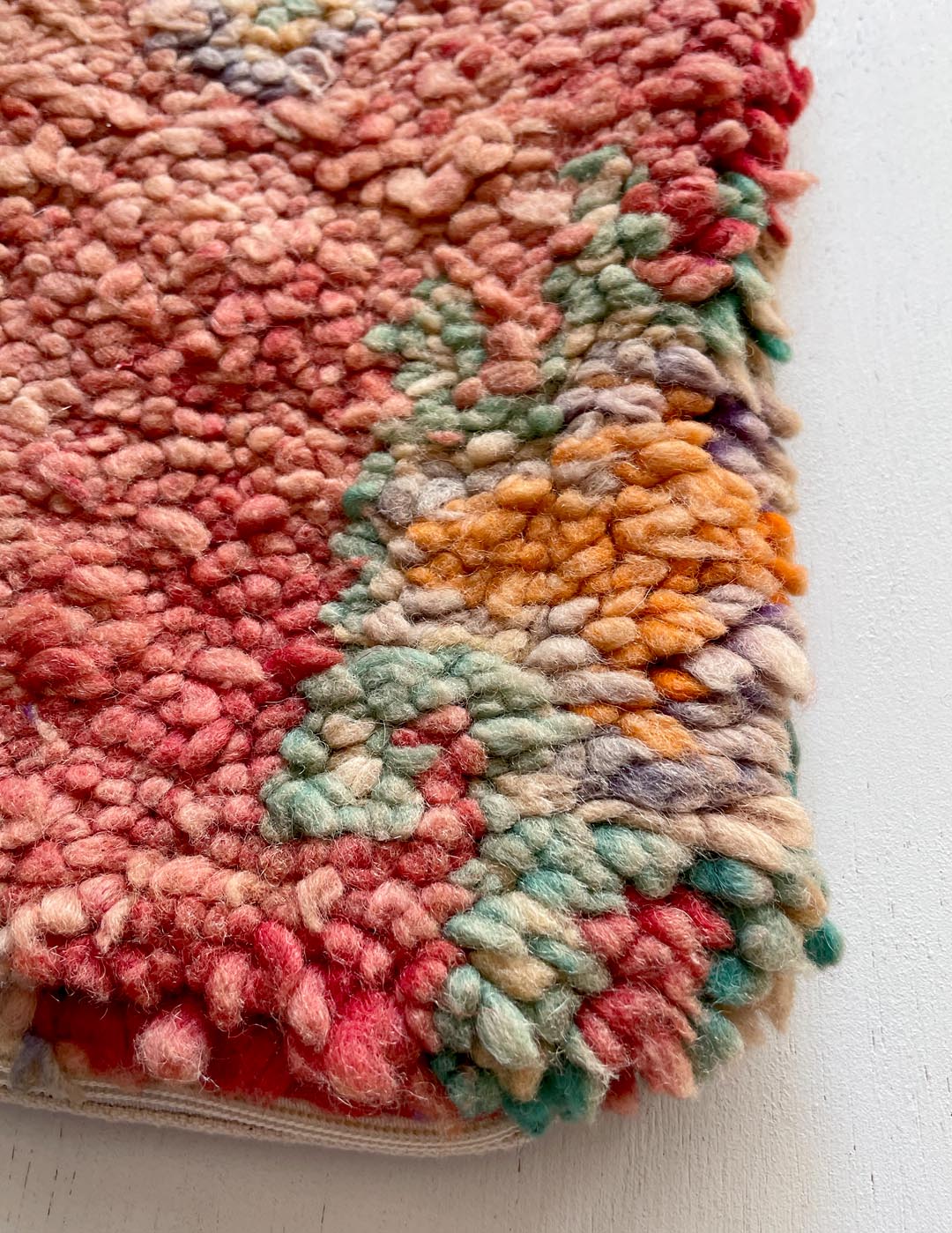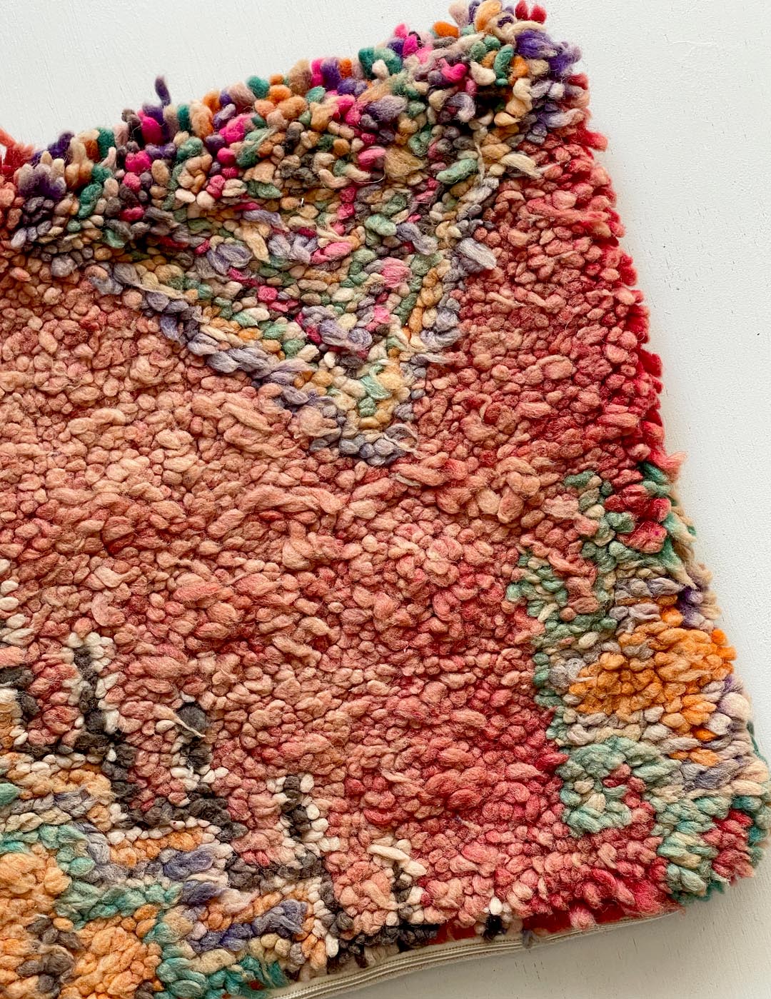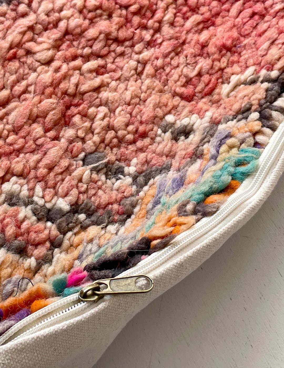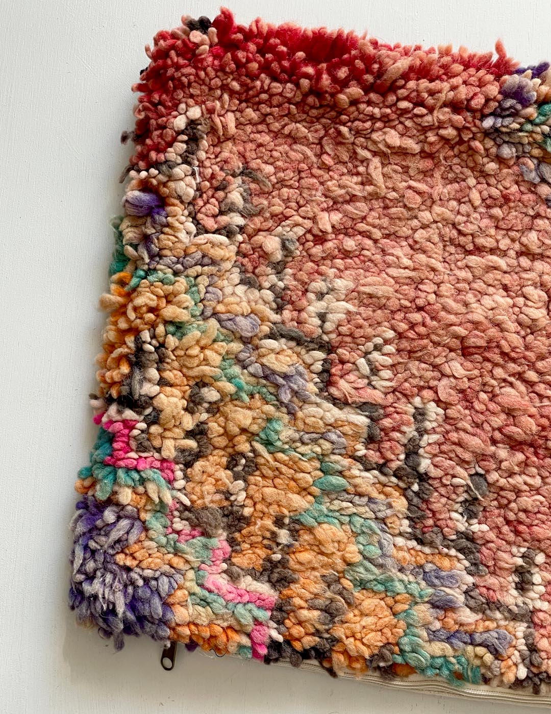 ベルベル人女性により織られたハンドメイドのラグを使用したウールのクッションカバーです。