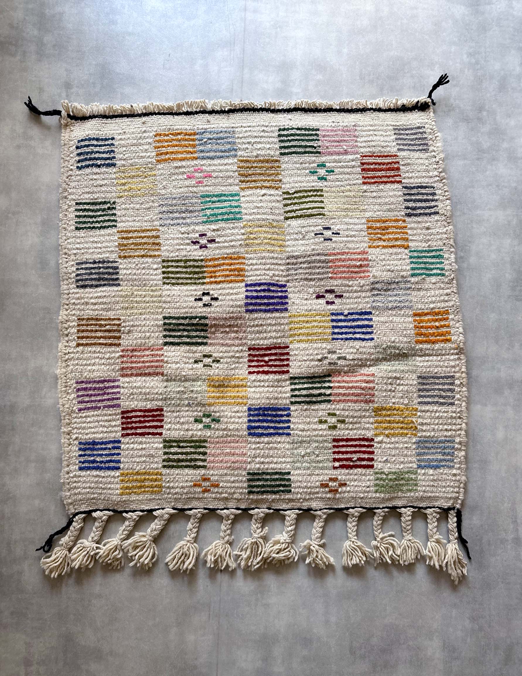 ウールラグですが毛足が短く、織り目が詰まっていないため季節を問わずご使用いただけます。床や壁を彩るインテリアとして存在感があり魅力的です。