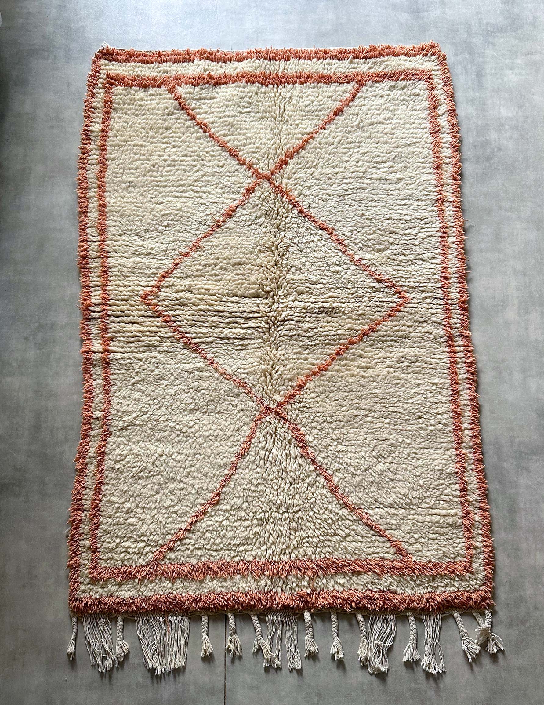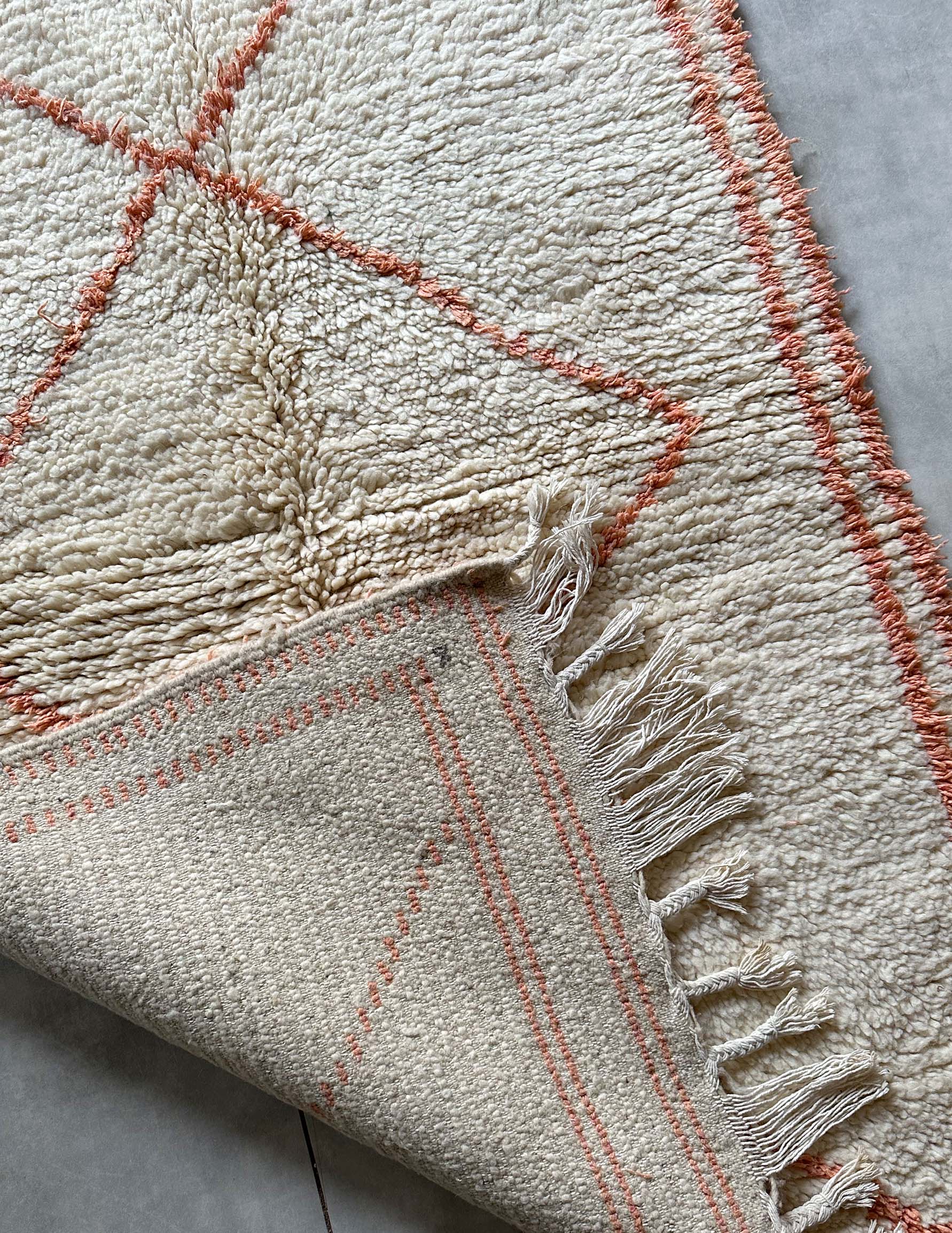 アジラルラグはモロッコのアトラス山脈に住むベルベル人女性によって、上質なウールを用いて1枚1枚丁寧に編み込まれたモロッカンラグです。