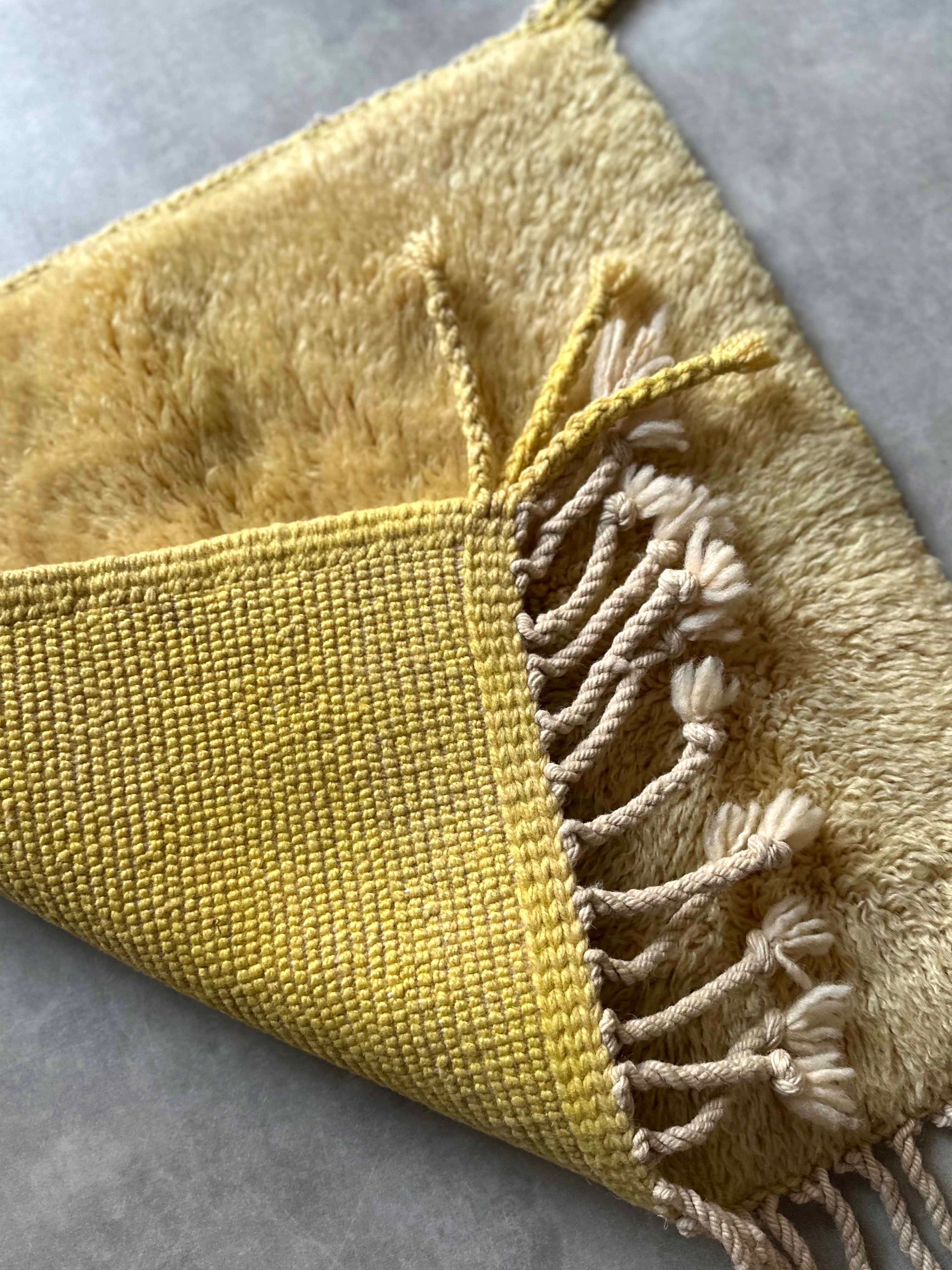 有名なベニワレンラグを凌ぐほどの驚くべき高密度な羊毛を使用し、繊細に手作業で準備されたウールを使って織られています。仕上げには、毛足を丁寧にカットする独自の技法が施され、洗練された美しい質感を生み出します。