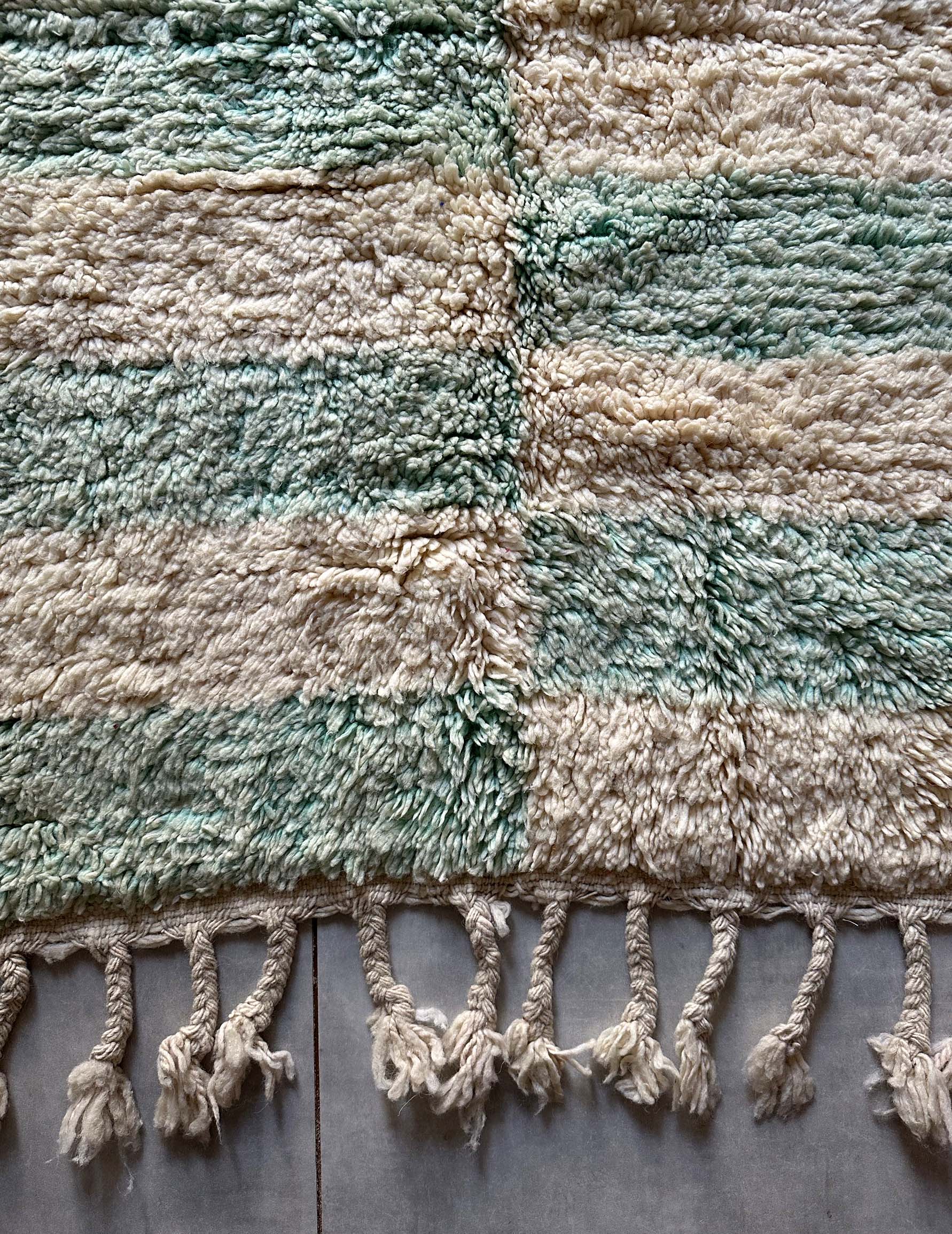 ブロックチェックのウールラグはモロッコのアトラス山脈に古くから住むベルベル人女性により伝統的な手法を古くから受けぎ、