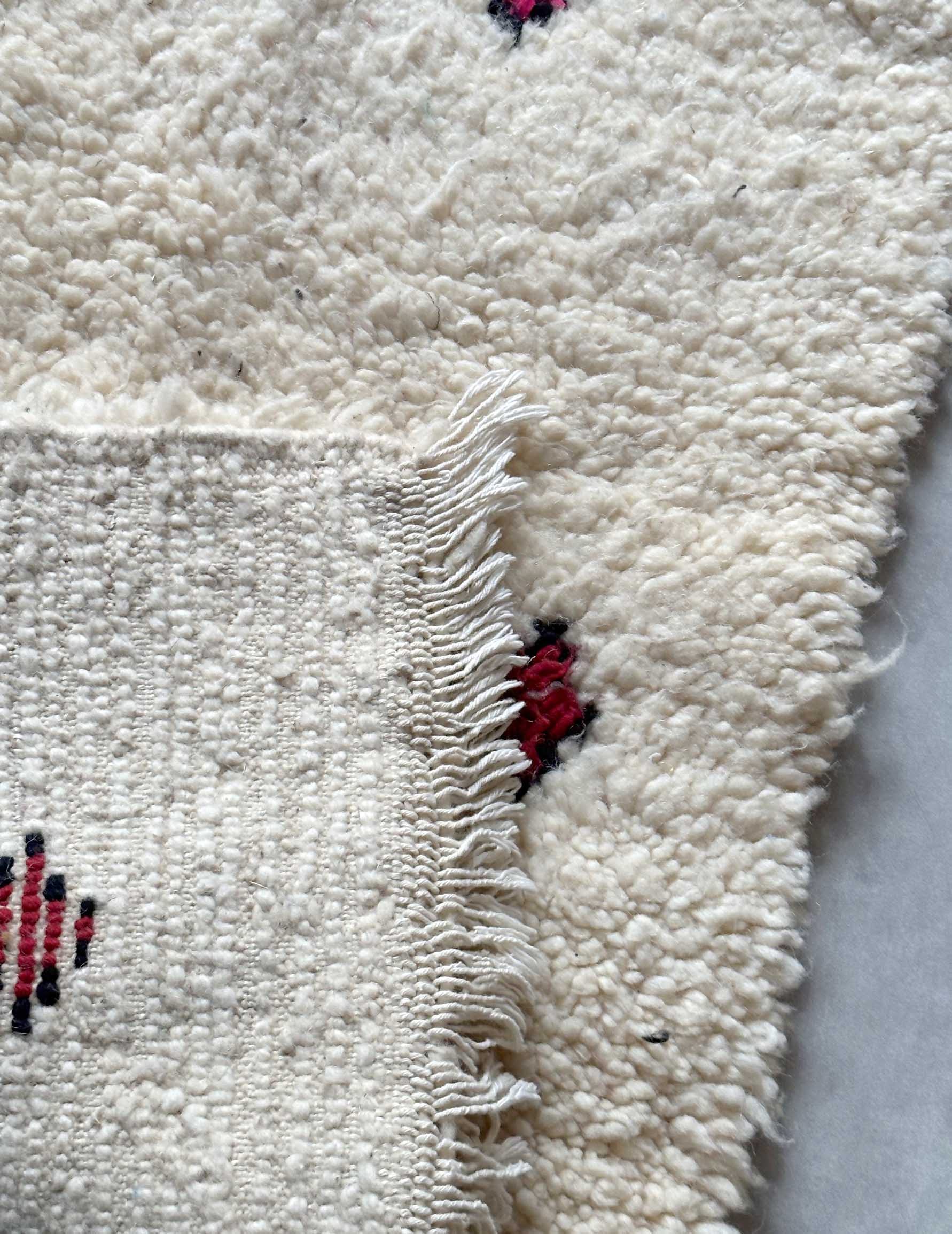 ・生産の性質上、ウールに他の色や植物の繊維が混じっている場合があります。検品の際に、除去できるものは取り除いていますが、手作業なので多少残っている場合がありますのでご了承ください。またピンセットを使うとラグを傷めずに取り除くことができます。