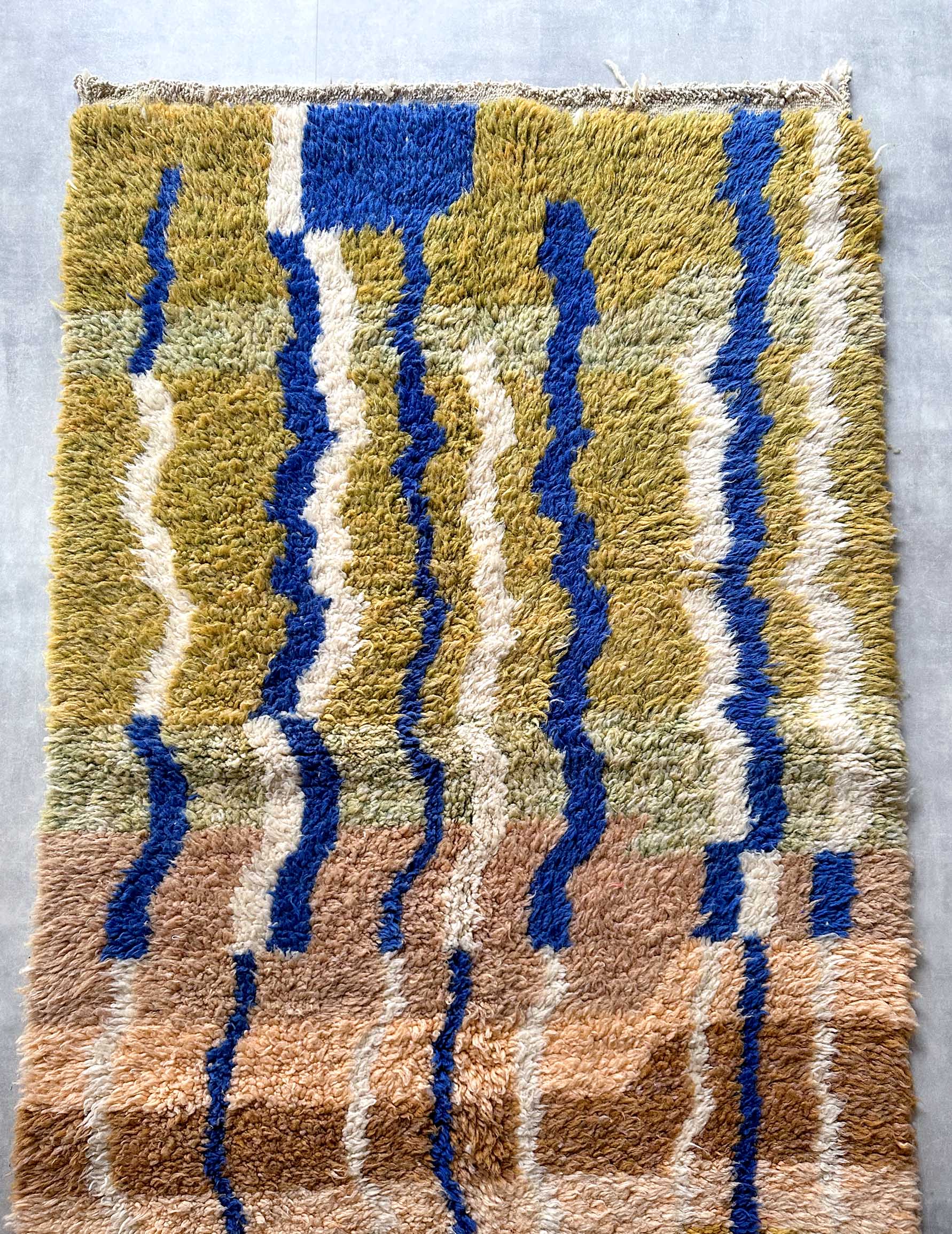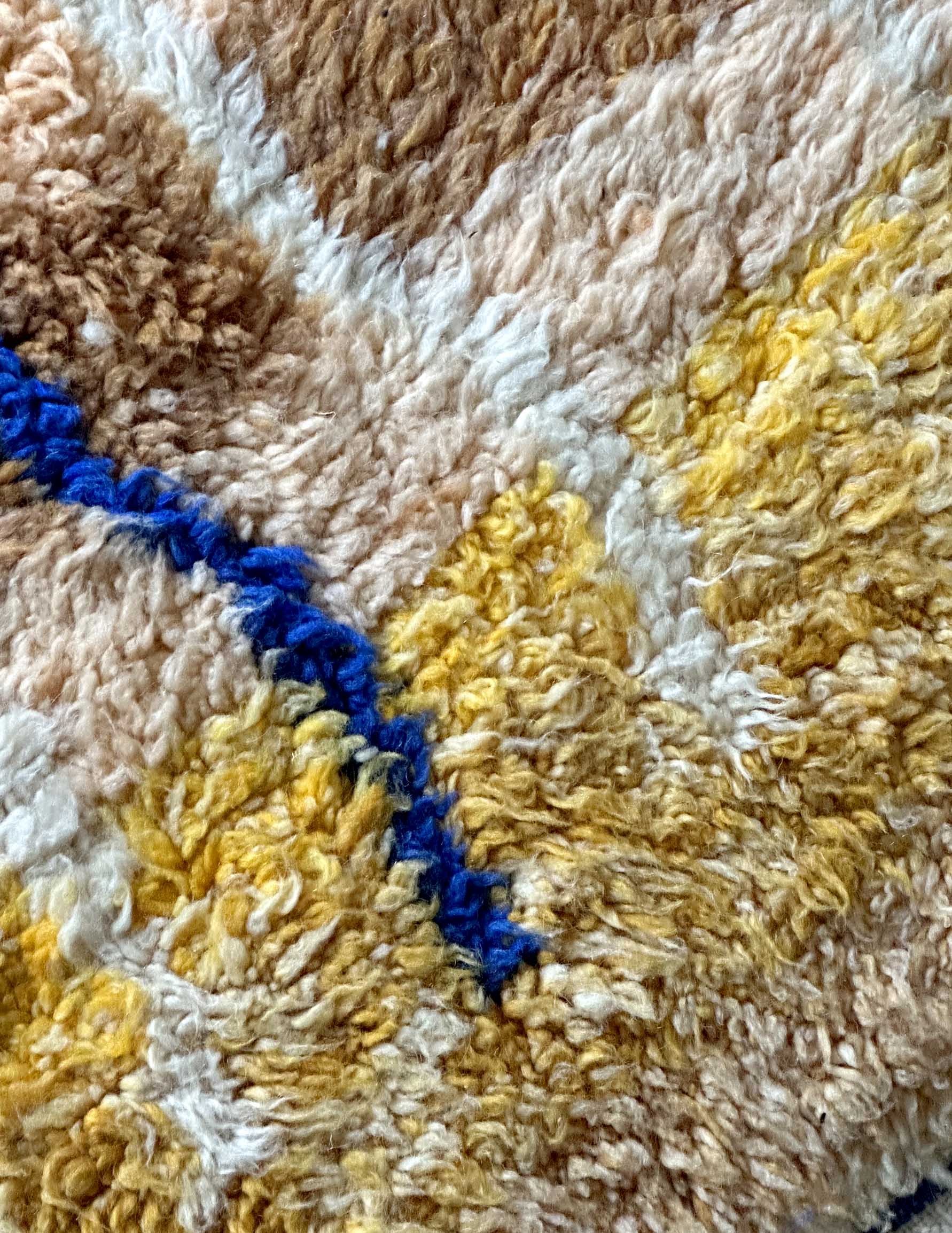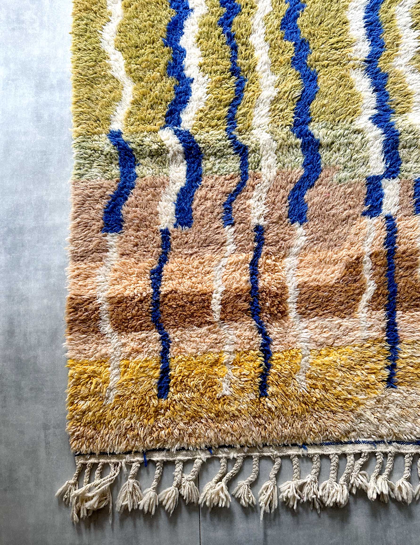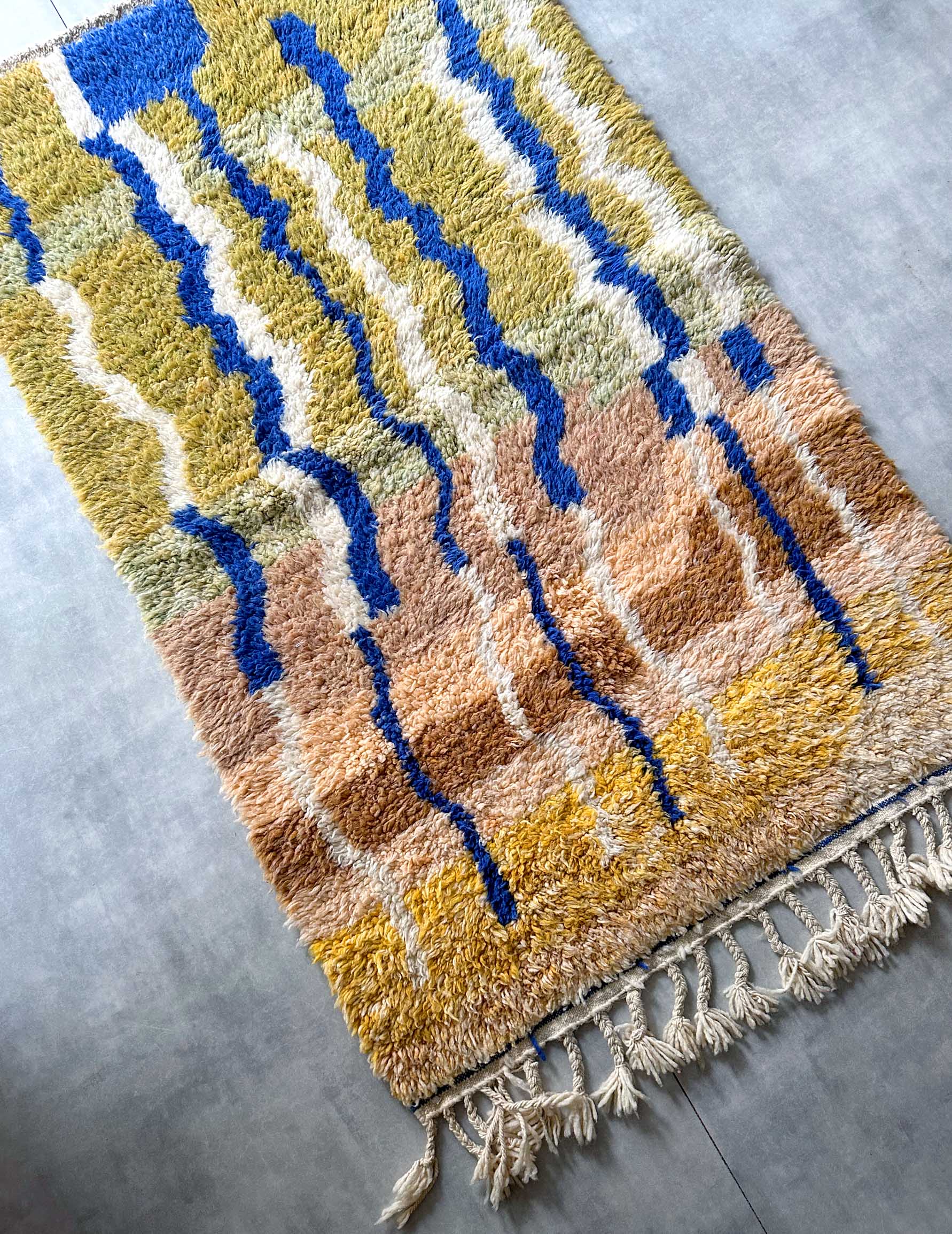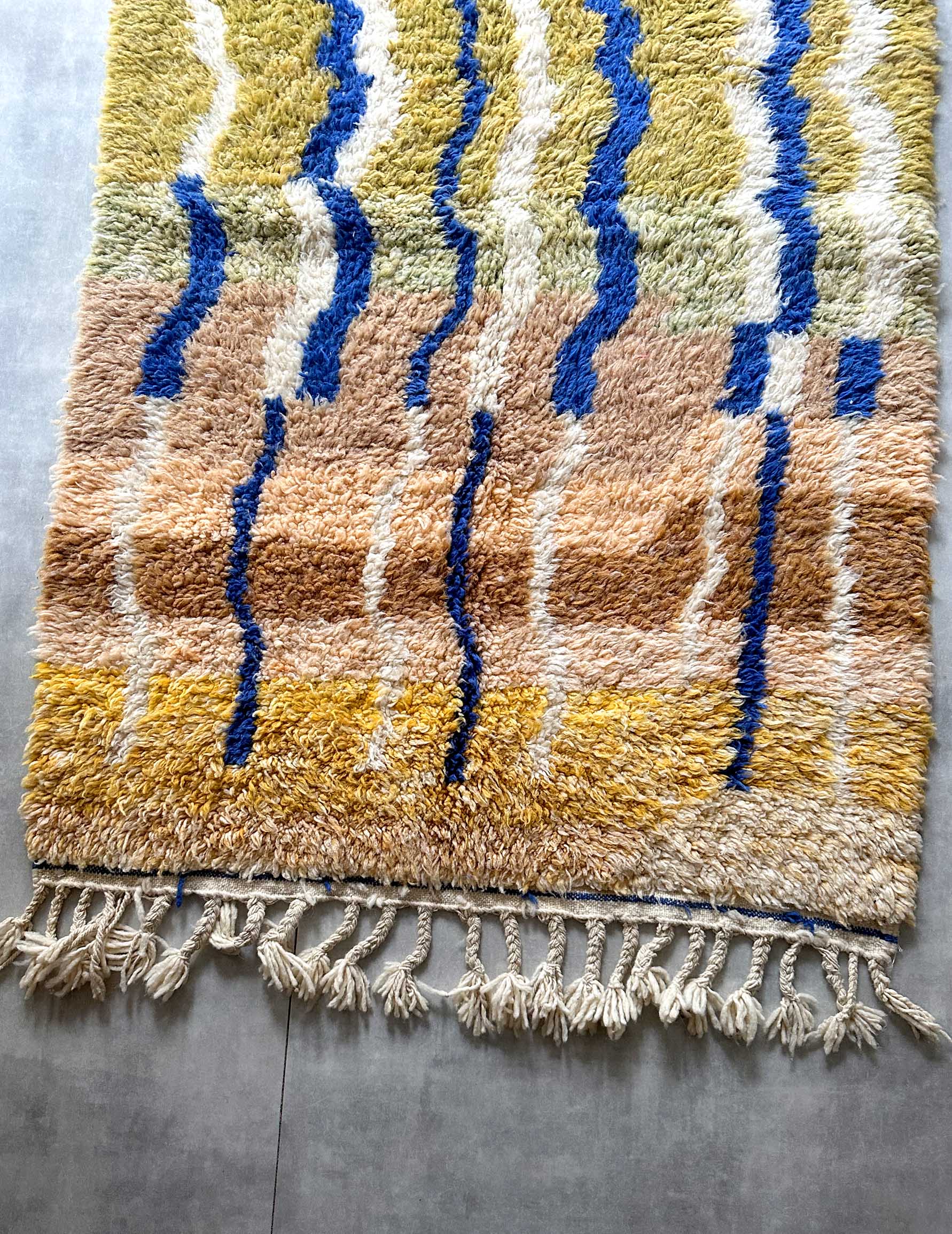 モロッコのアトラス山脈に住むベルベル人女性によって、一目一目しっかりと結びながら織らているハンドメイドのウールラグです。