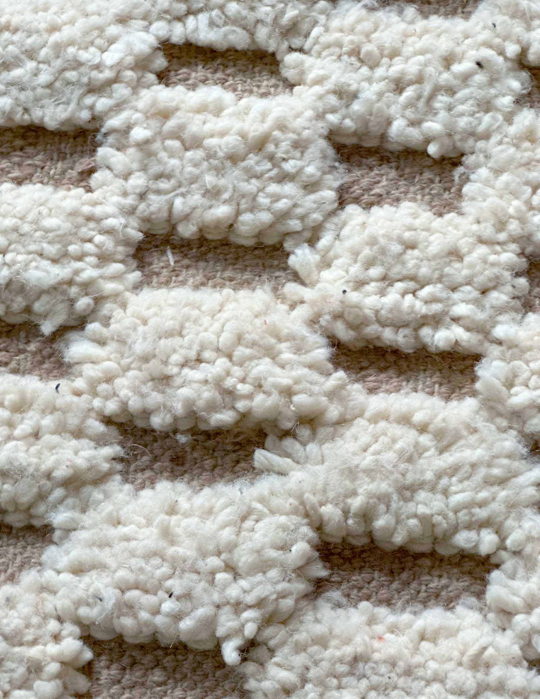 ブロックチェックのウールラグはモロッコのアトラス山脈に古くから住むベルベル人女性により伝統的な手法を古くから受けぎ、