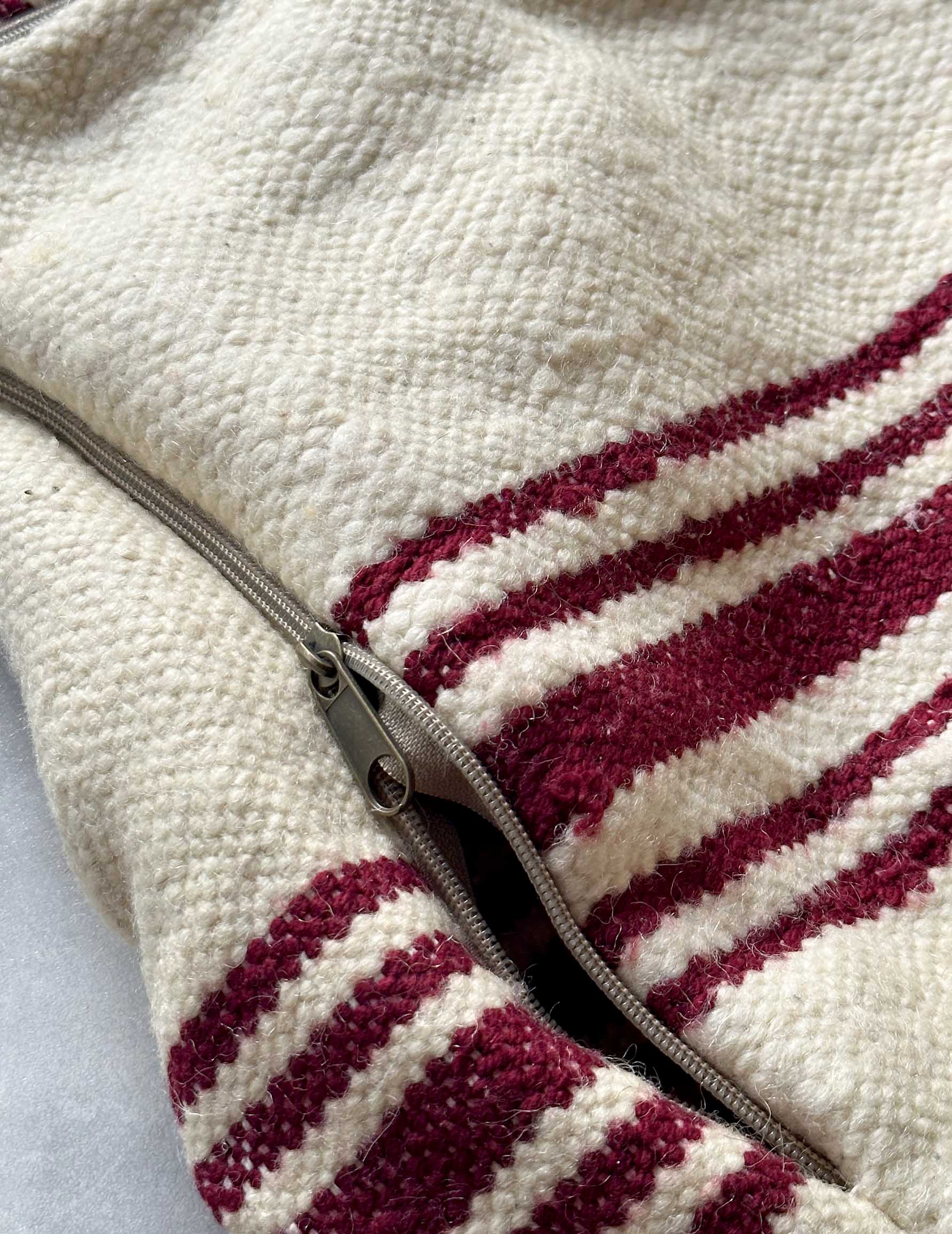 ベルベル人女性により織られたハンドメイドのキリムラグを使用したウールのプフです。