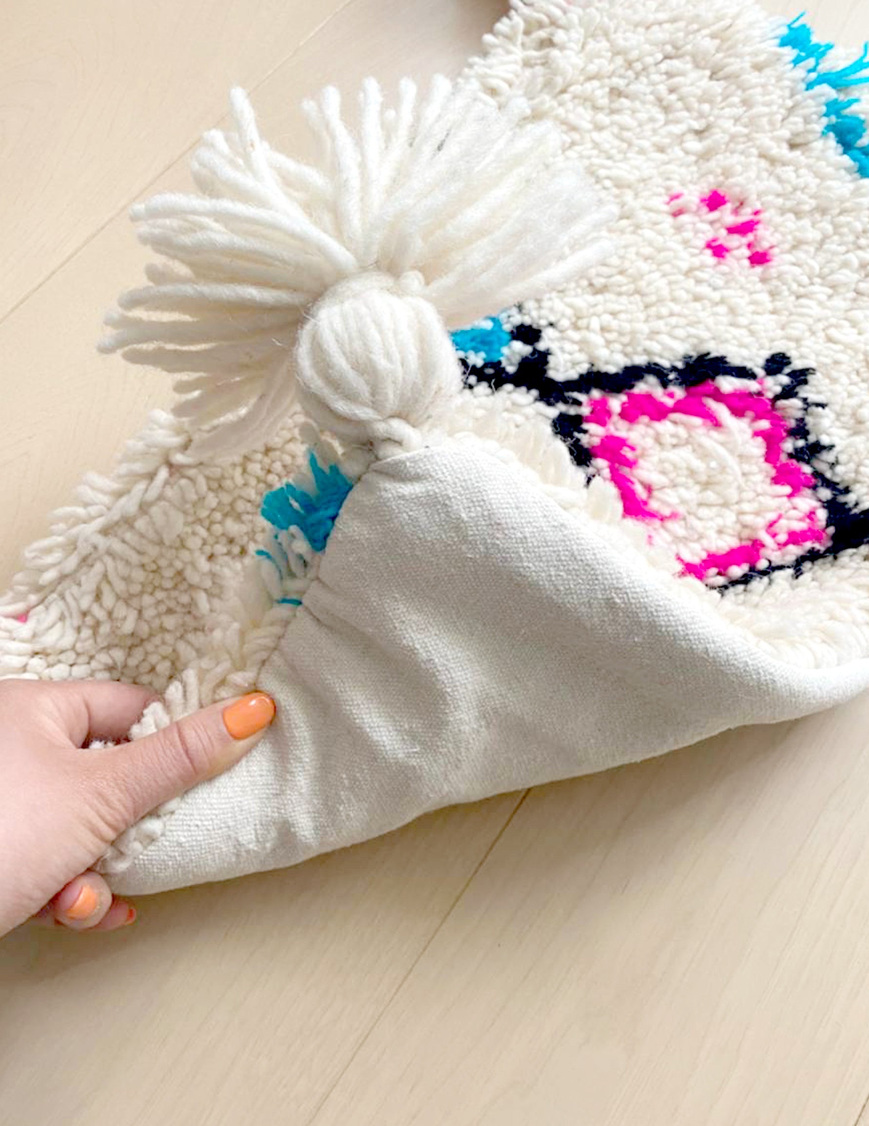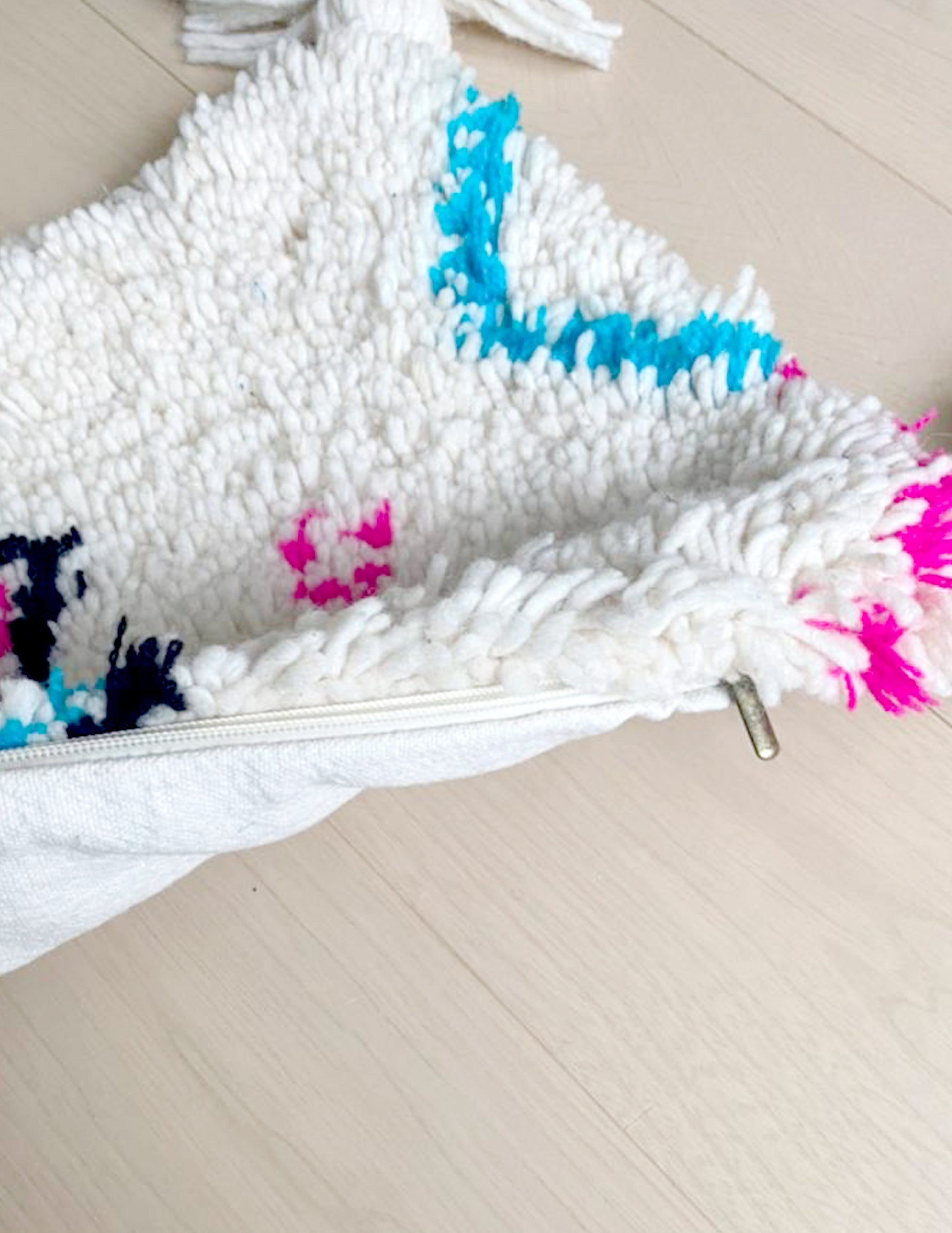 ベルベル人女性により織られたハンドメイドのラグを使用したウールのクッションカバーです。