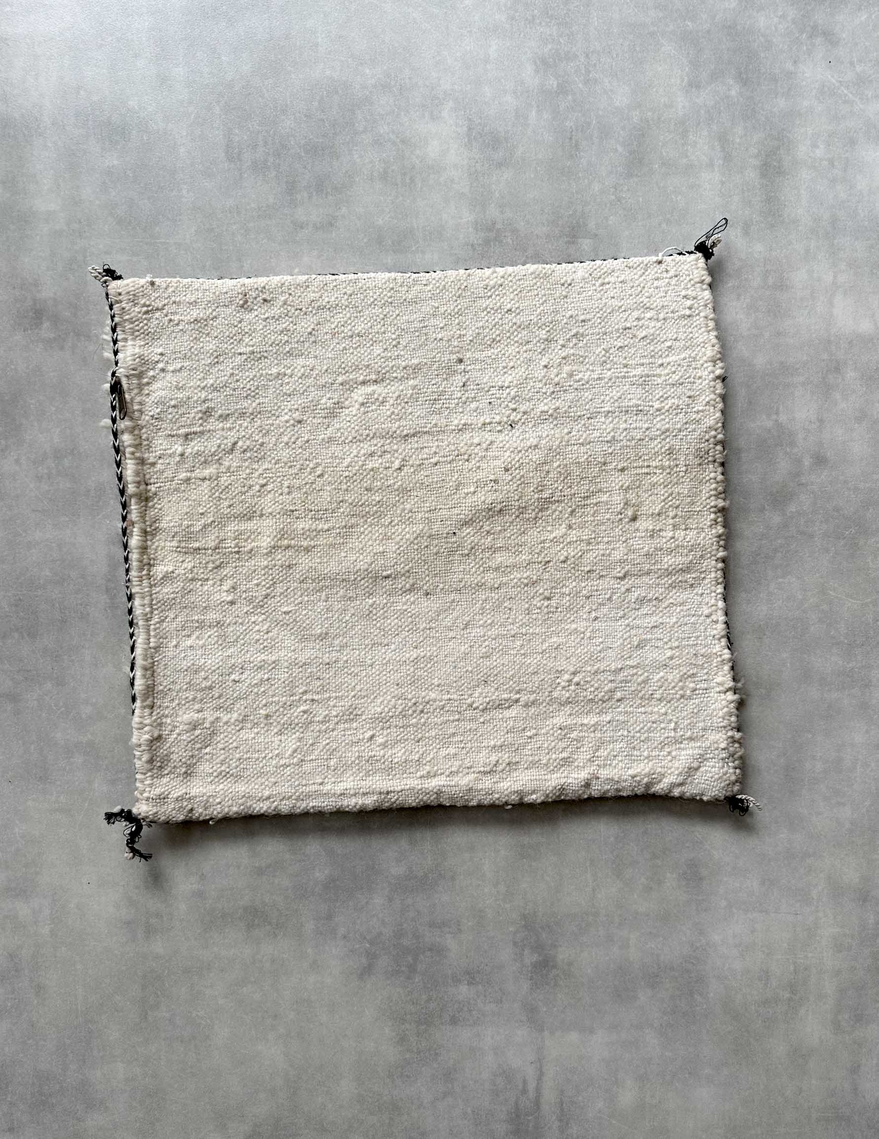 ベニワレンはモロッコのアトラス山脈に住むベルベル人女性によって、一目一目しっかりと結びながら織らているハンドメイドのウールラグです。白を基調とし黒の細いラインで模様が描かれています。触り心地はふわふわと柔らかく長い毛足が特徴です。