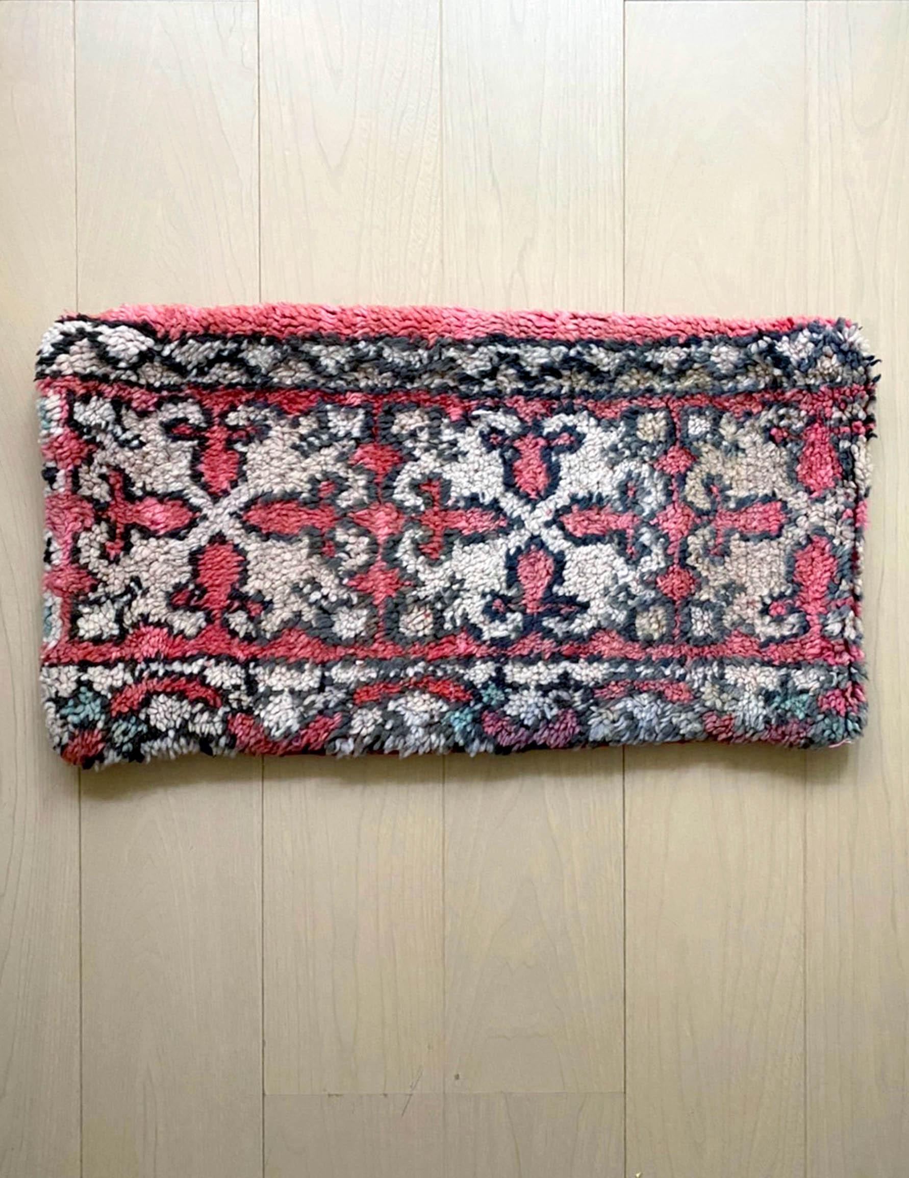 ベルベル人女性により織られたハンドメイドのラグを使用したウールのクッションカバーです。
