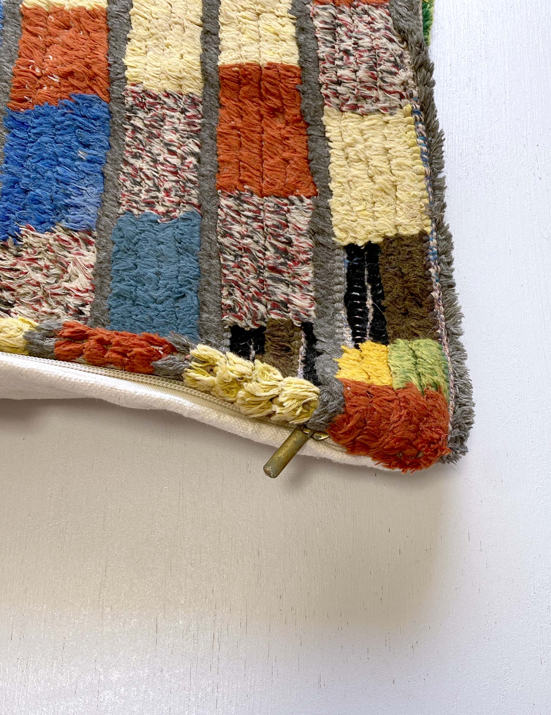 ベルベル人女性により織られたハンドメイドのラグを使用したウールのクッションカバーです。