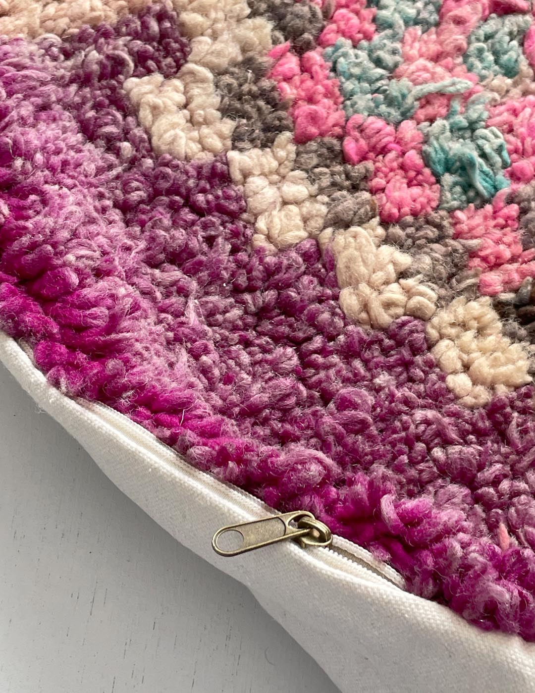 ベルベル人女性により織られたハンドメイドのラグを使用したウールのクッションカバーです。