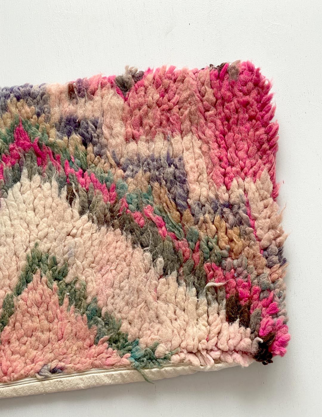 ベルベル人女性により織られたハンドメイドのラグを使用したウールのクッションカバーです。