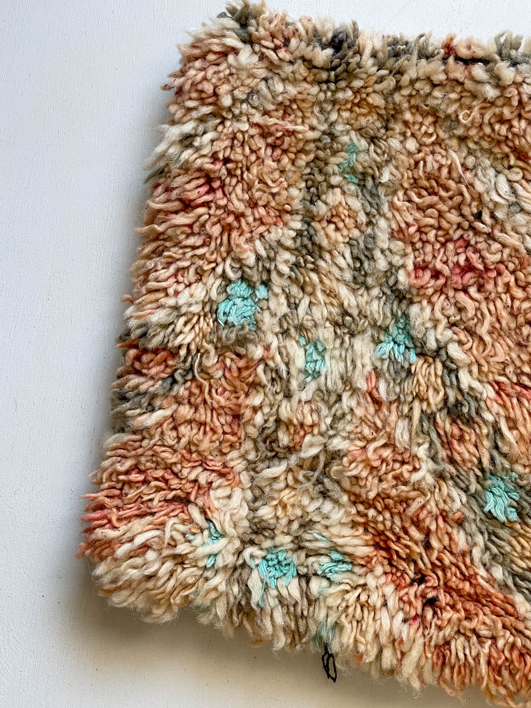 ベルベル人女性により織られたハンドメイドのラグを使用したウールのクッションカバーです。