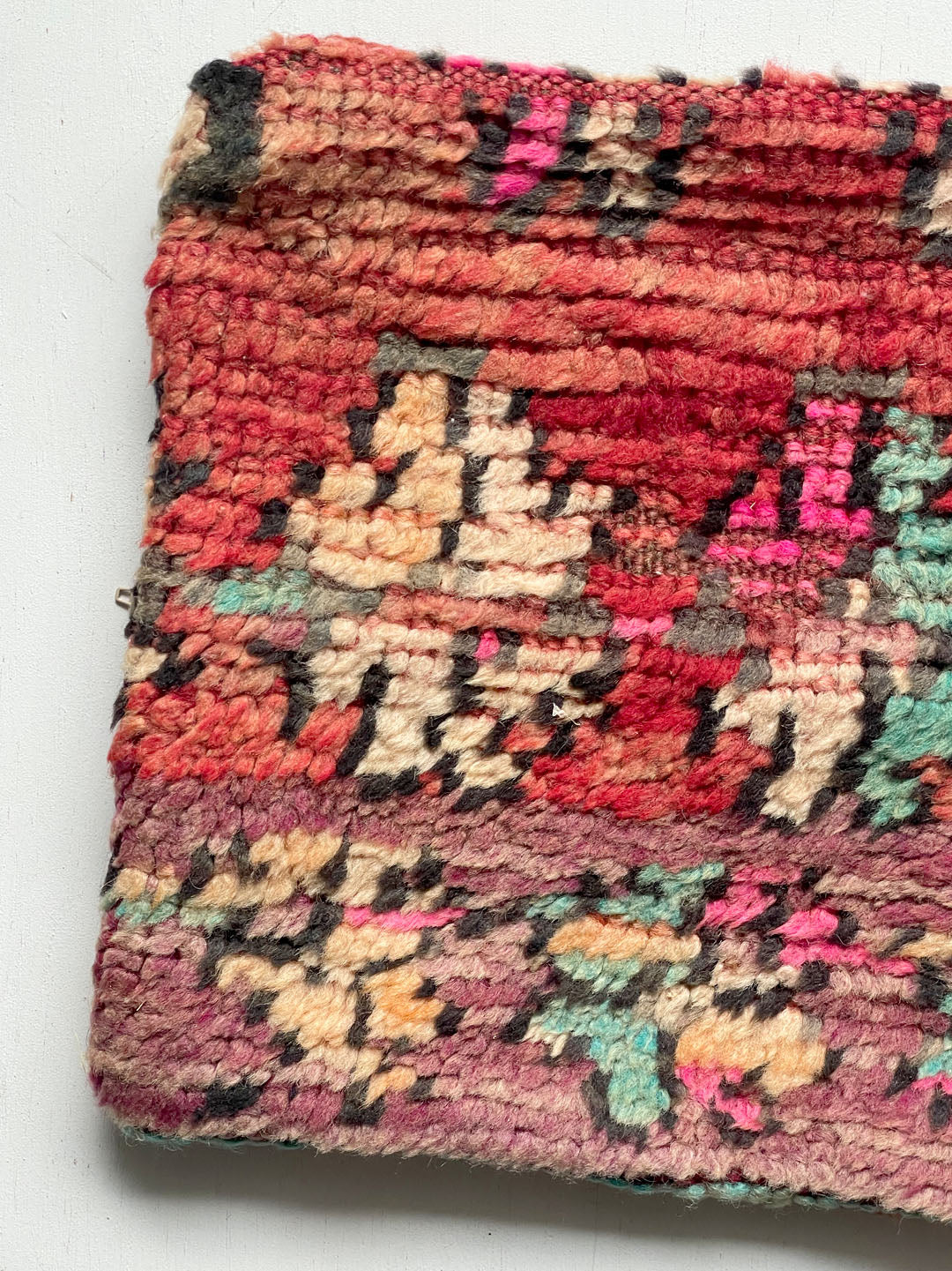 ベルベル人女性により織られたハンドメイドのラグを使用したウールのクッションカバーです。