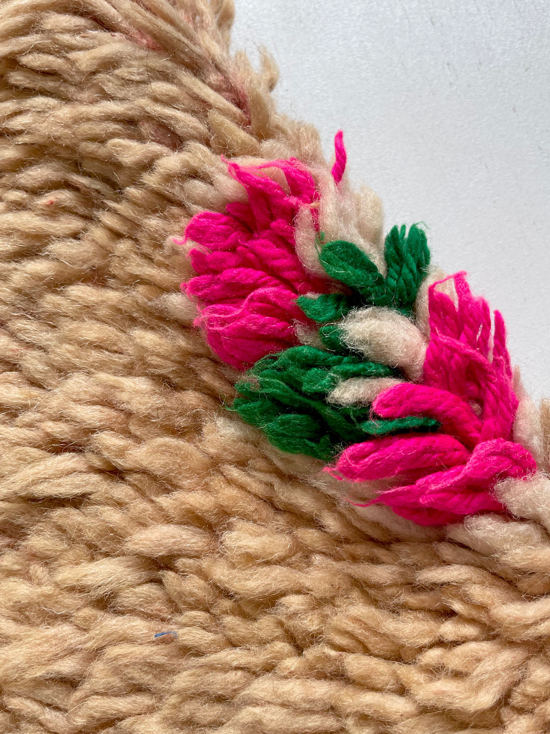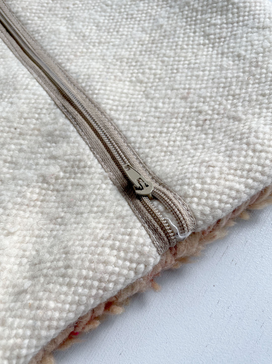 ベルベル人女性により織られたハンドメイドのラグを使用したウールのクッションカバーです。