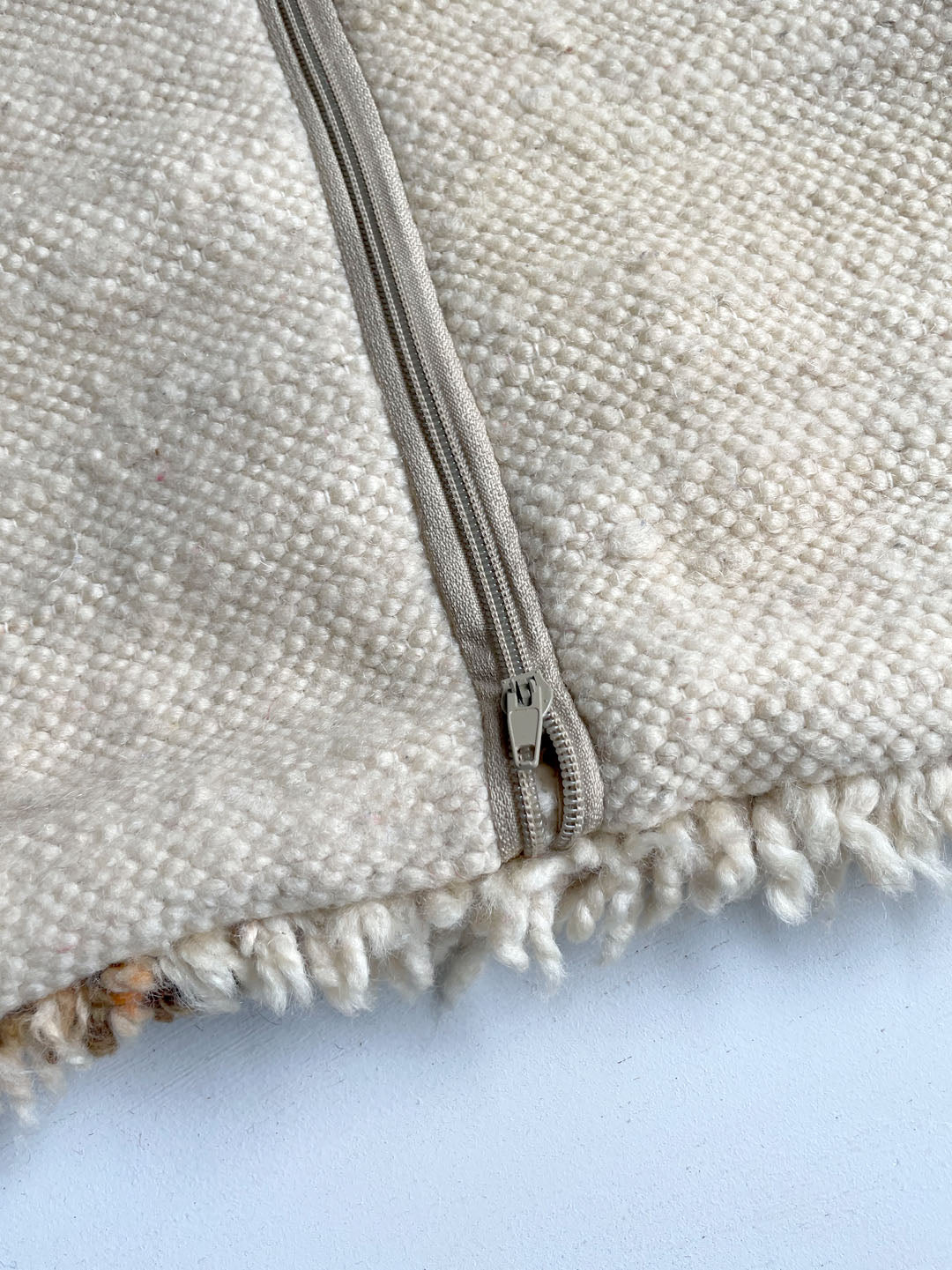 ベルベル人女性により織られたハンドメイドのラグを使用したウールのクッションカバーです。
