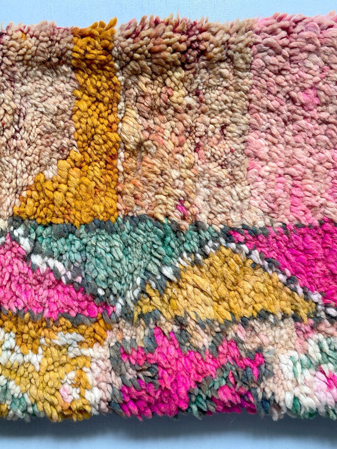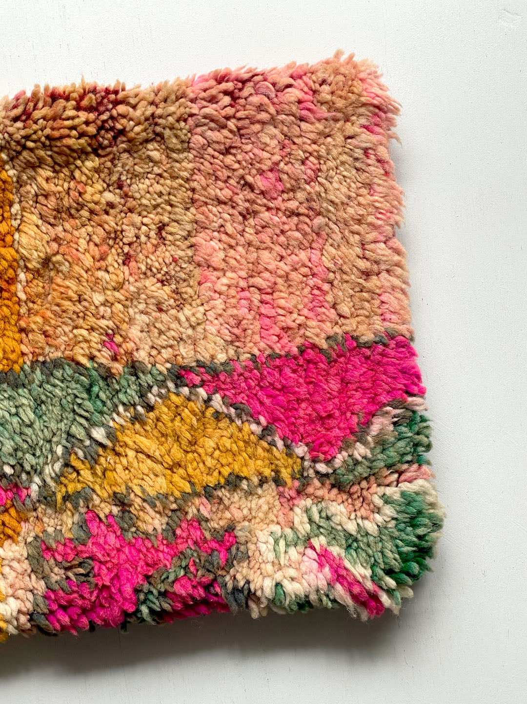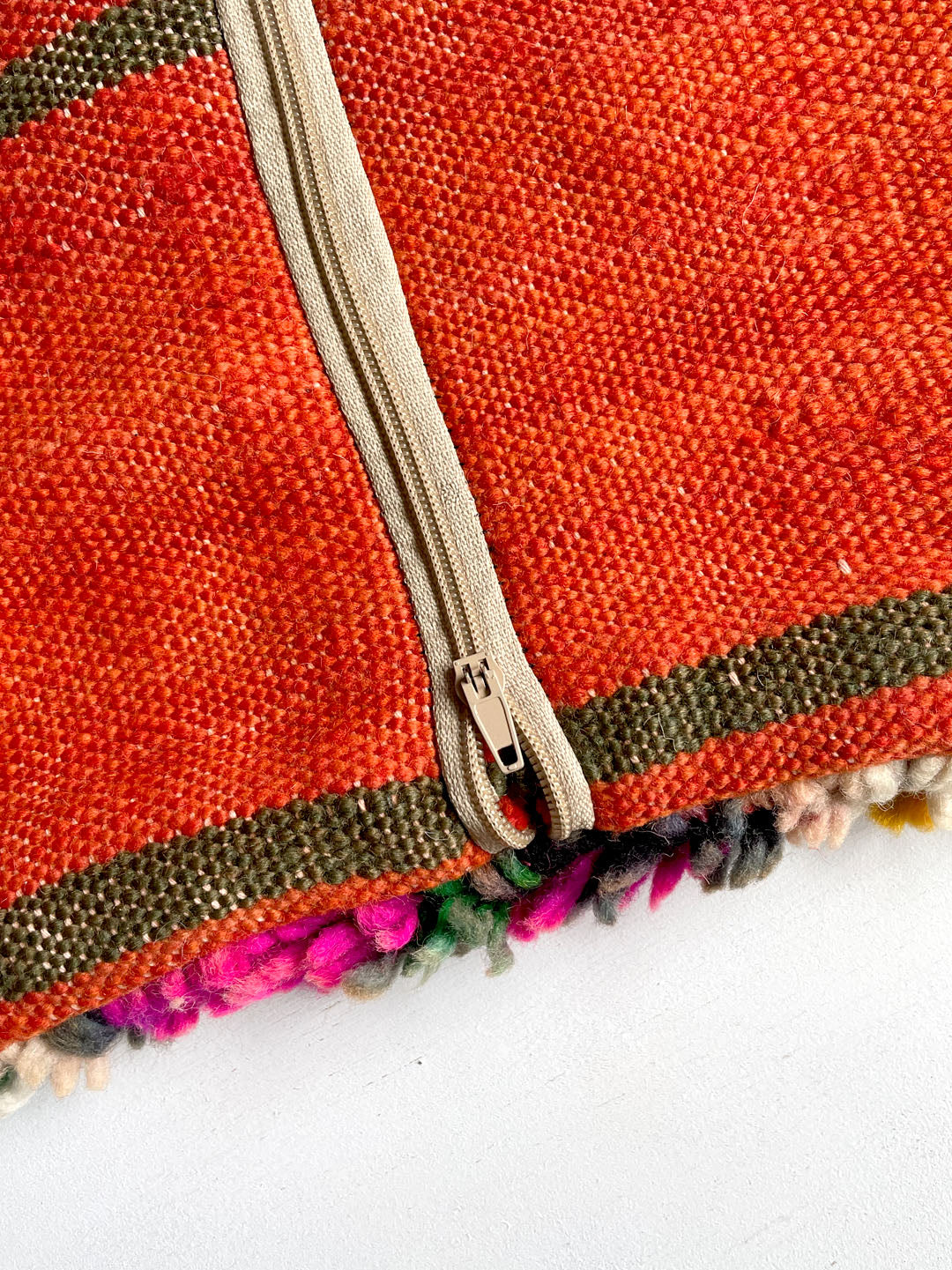 ベルベル人女性により織られたハンドメイドのラグを使用したウールのクッションカバーです。