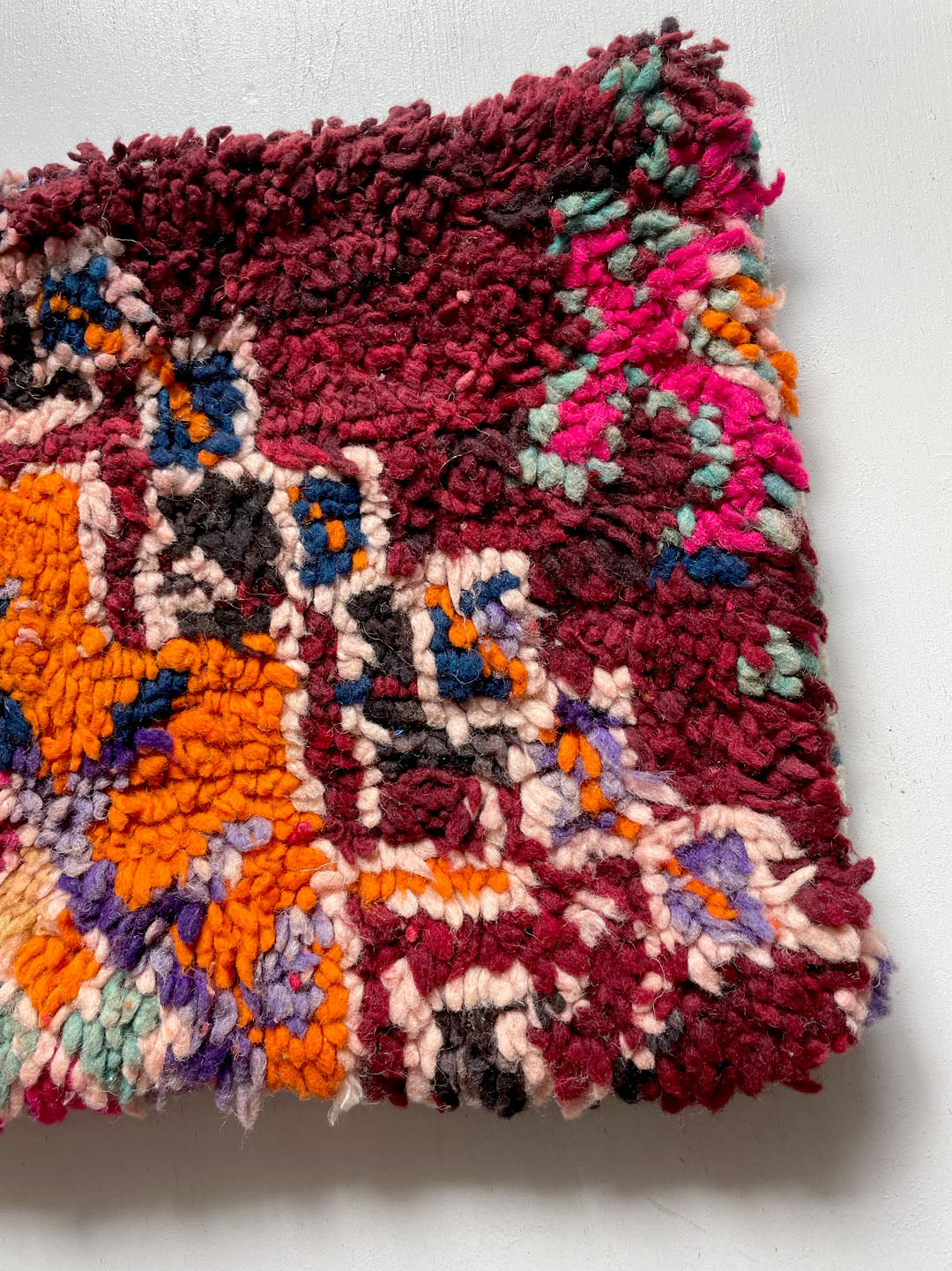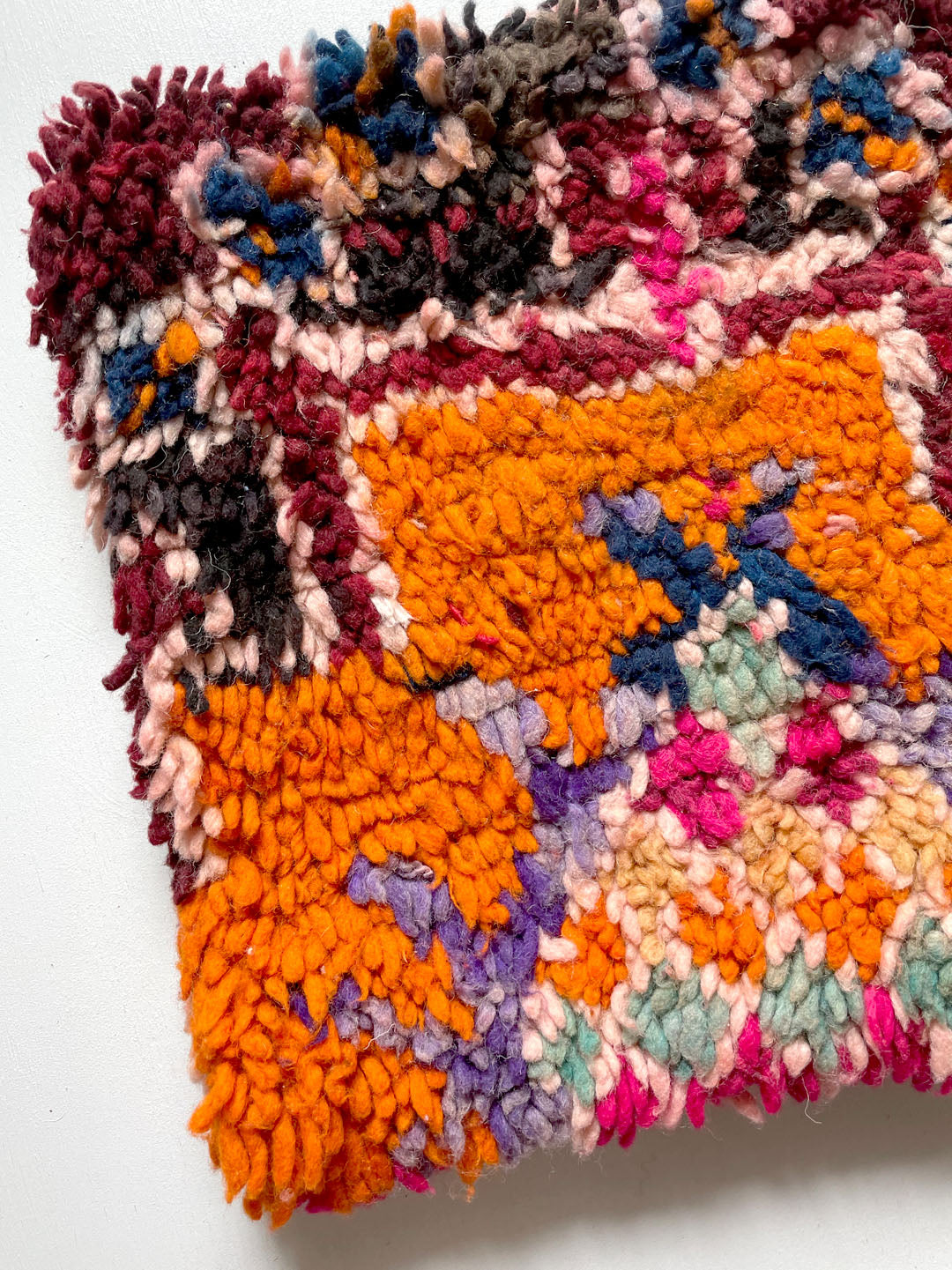 ベルベル人女性により織られたハンドメイドのラグを使用したウールのクッションカバーです。
