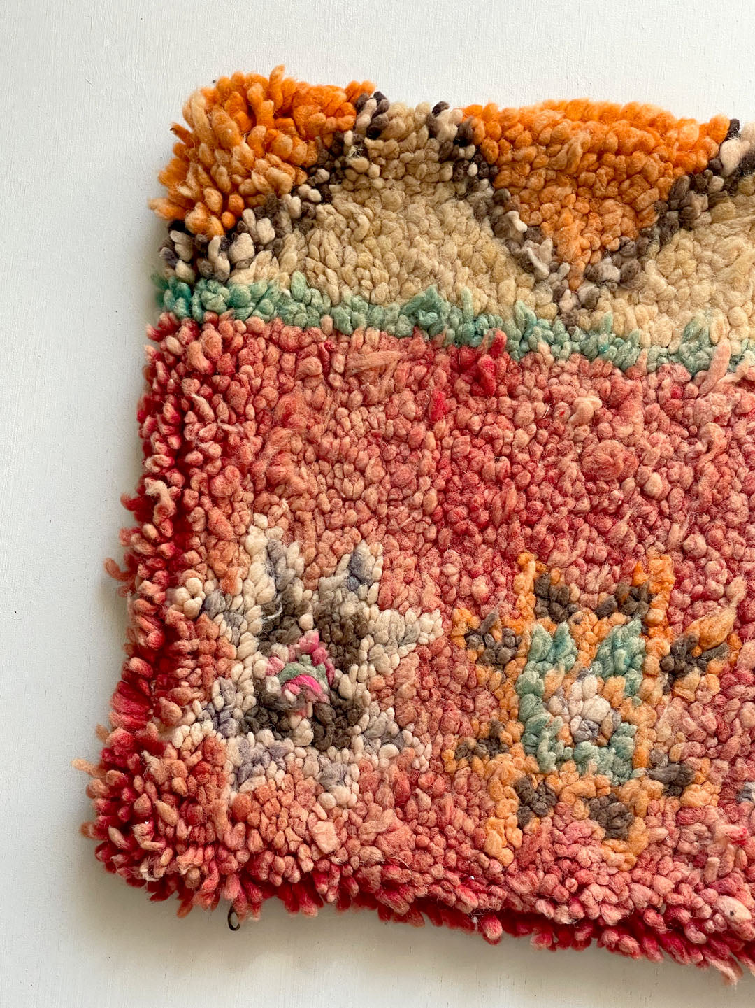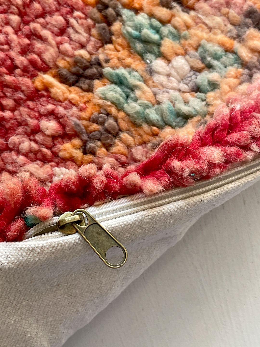 ベルベル人女性により織られたハンドメイドのラグを使用したウールのクッションカバーです。