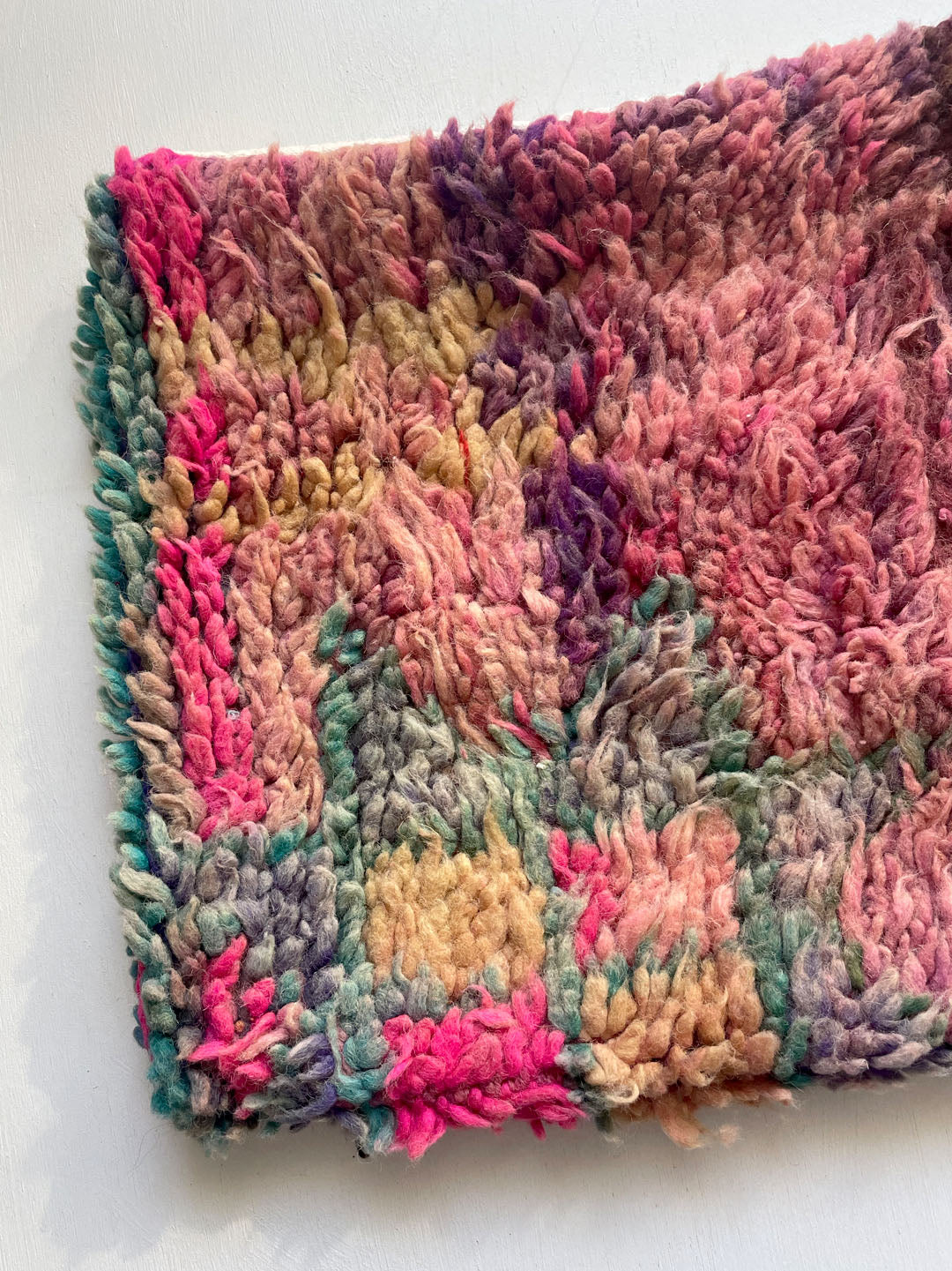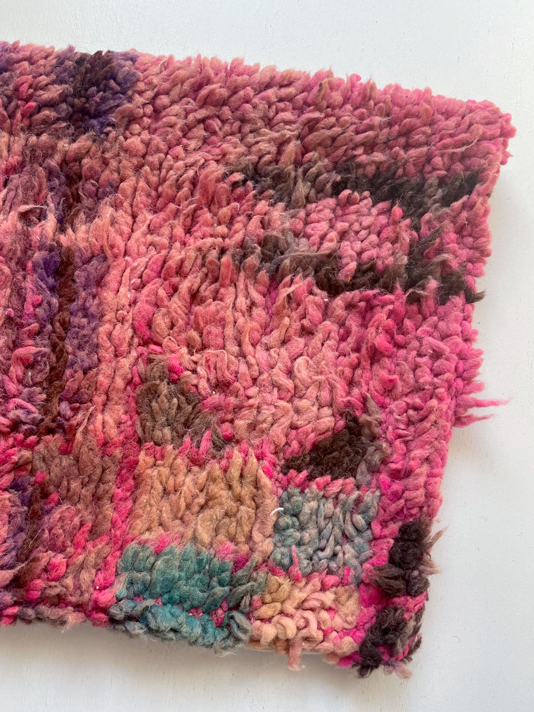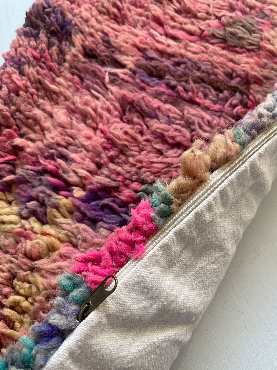 ベルベル人女性により織られたハンドメイドのラグを使用したウールのクッションカバーです。