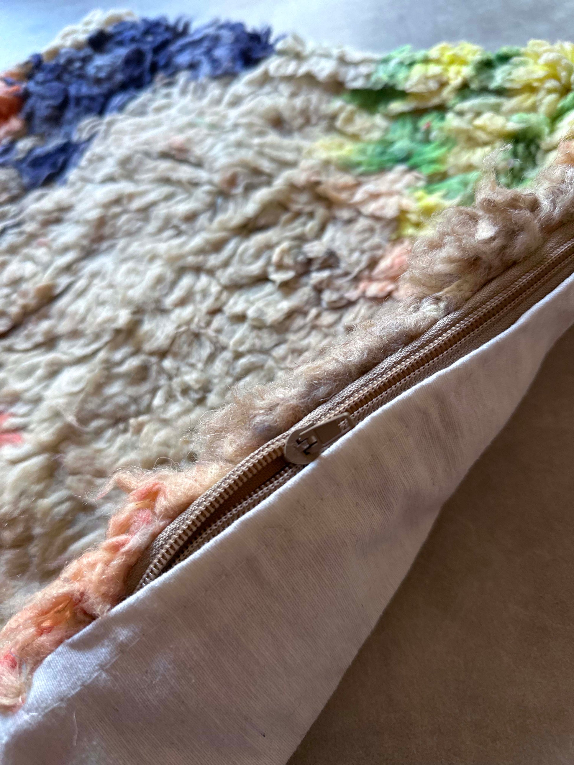 ベルベル人女性により織られたハンドメイドのラグを使用したウールのクッションカバーです。