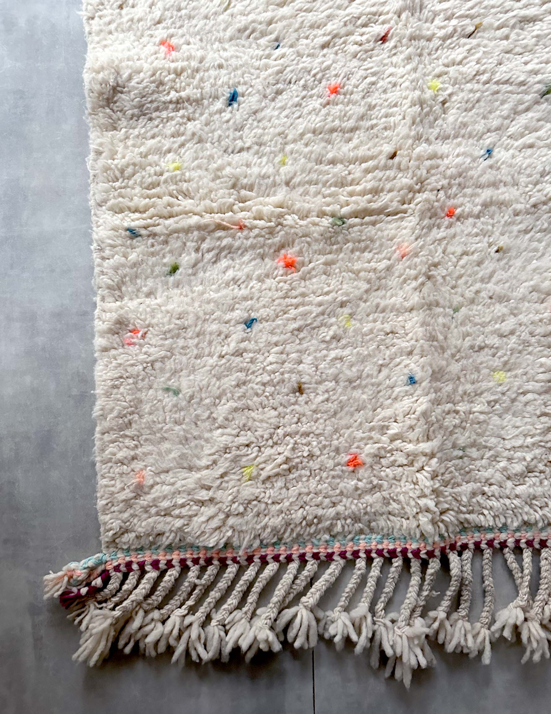 ・生産の性質上、ウールに他の色や植物の繊維が混じっている場合があります。検品の際に、除去できるものは取り除いていますが、手作業なので多少残っている場合がありますのでご了承ください。またピンセットを使うとラグを傷めずに取り除くことができます。