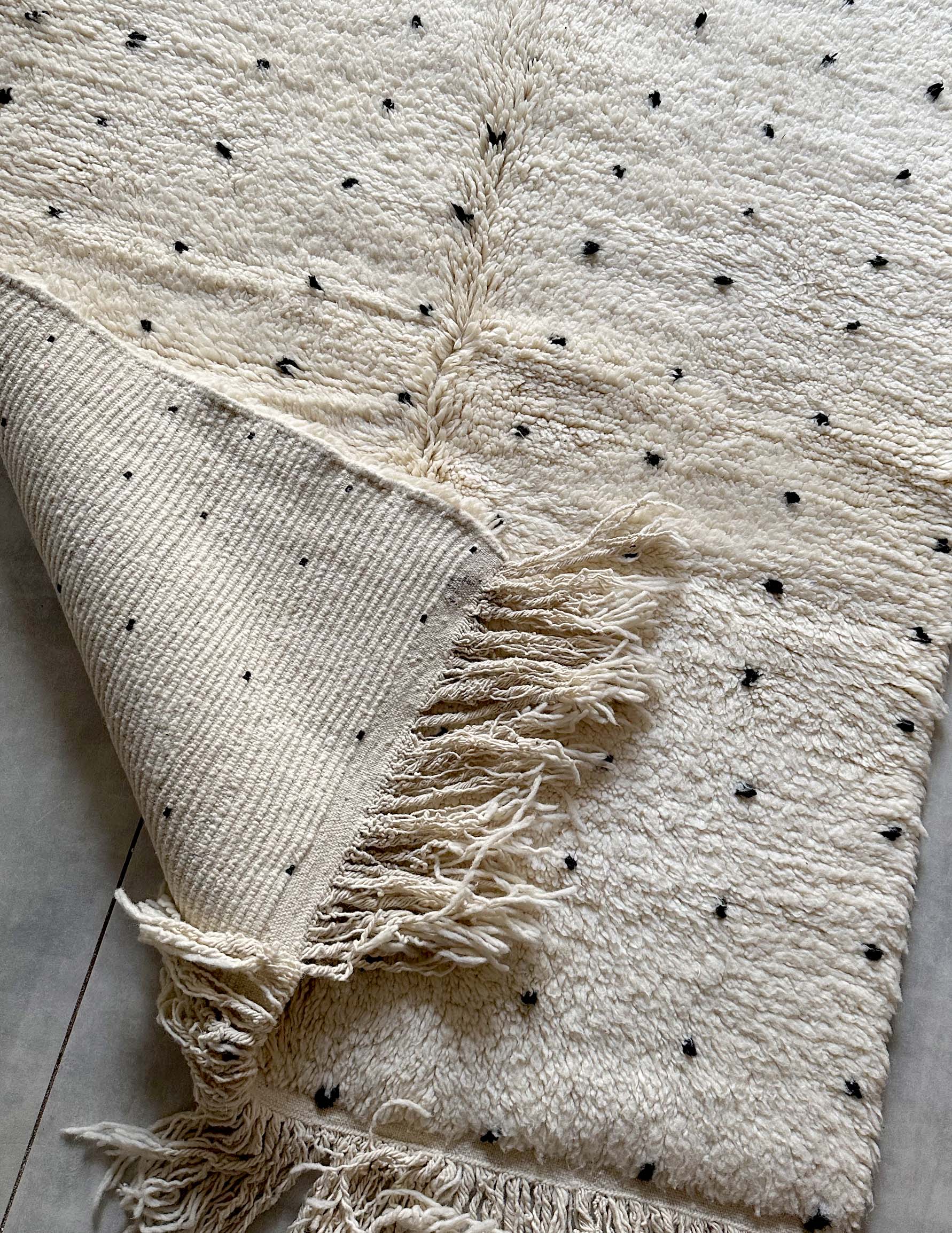 ・生産の性質上、ウールに他の色や植物の繊維が混じっている場合があります。検品の際に、除去できるものは取り除いていますが、手作業なので多少残っている場合がありますのでご了承ください。またピンセットを使うとラグを傷めずに取り除くことができます。