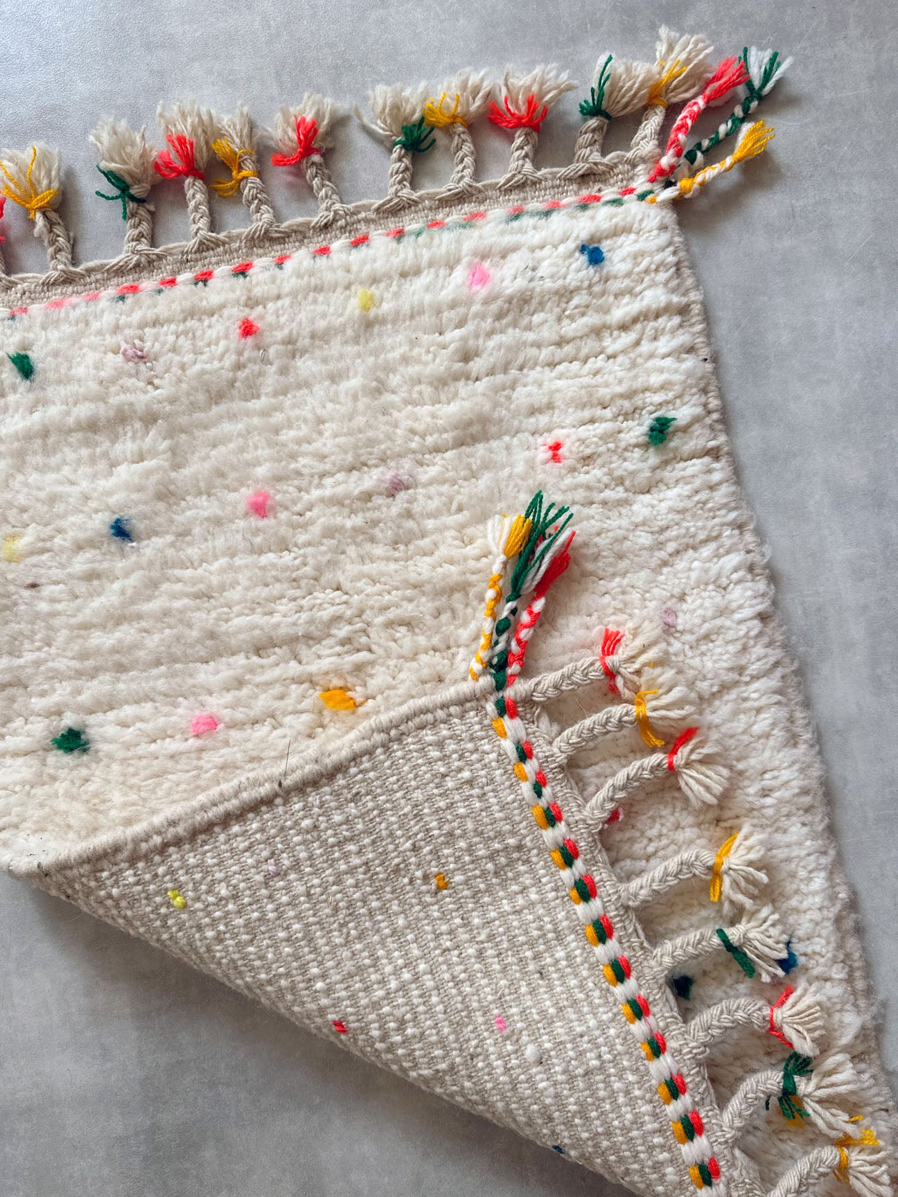 ・生産の性質上、ウールに他の色や植物の繊維が混じっている場合があります。検品の際に、除去できるものは取り除いていますが、手作業なので多少残っている場合がありますのでご了承ください。またピンセットを使うとラグを傷めずに取り除くことができます。