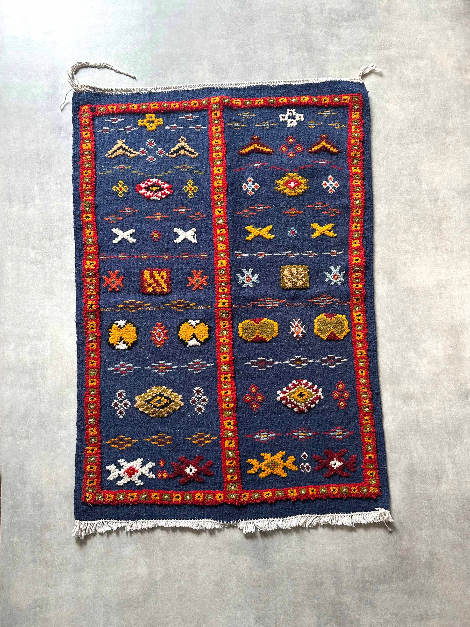 モロッコの南に位置する、サハラのベルベル人女性によりウールで丁寧に編まれた平織タイプのラグ。