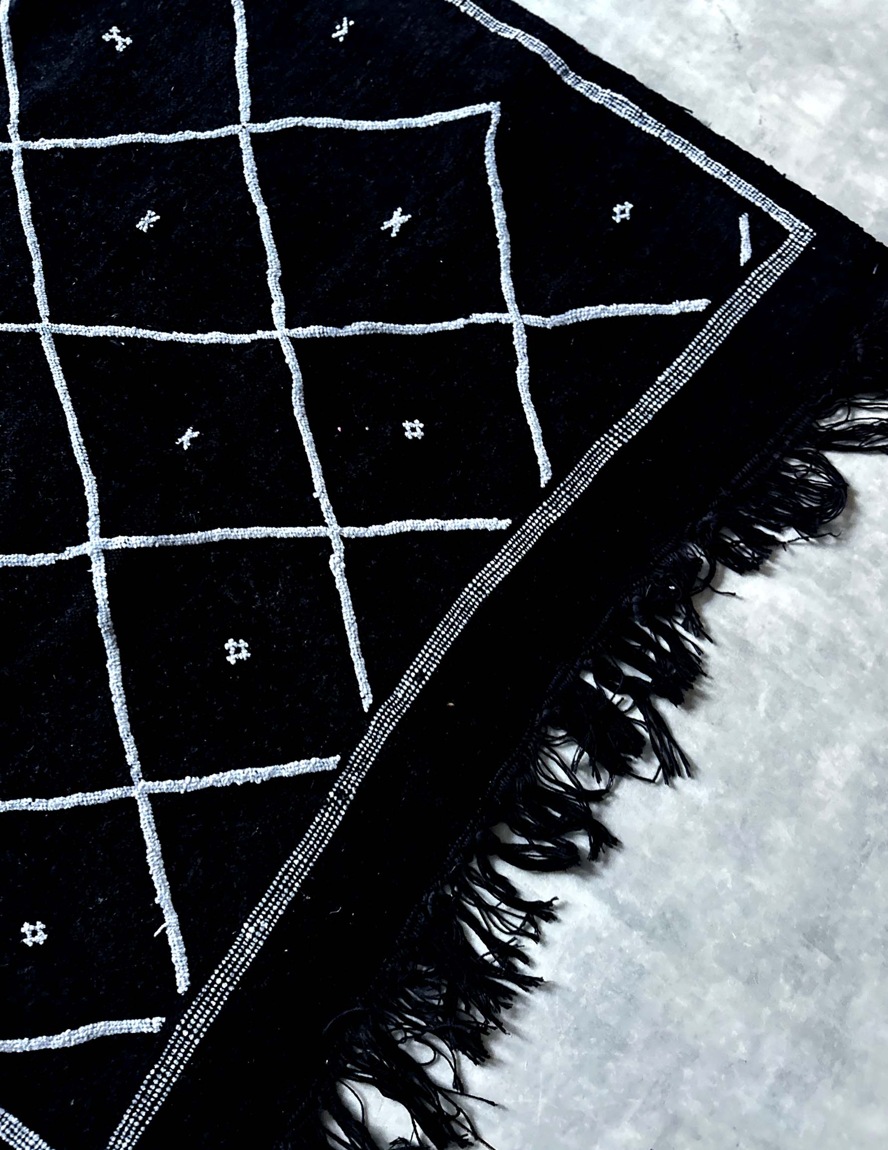 モロッコ南部のベルベル人女性によって、コットンで丁寧に織り上げられた平織タイプのラグ。