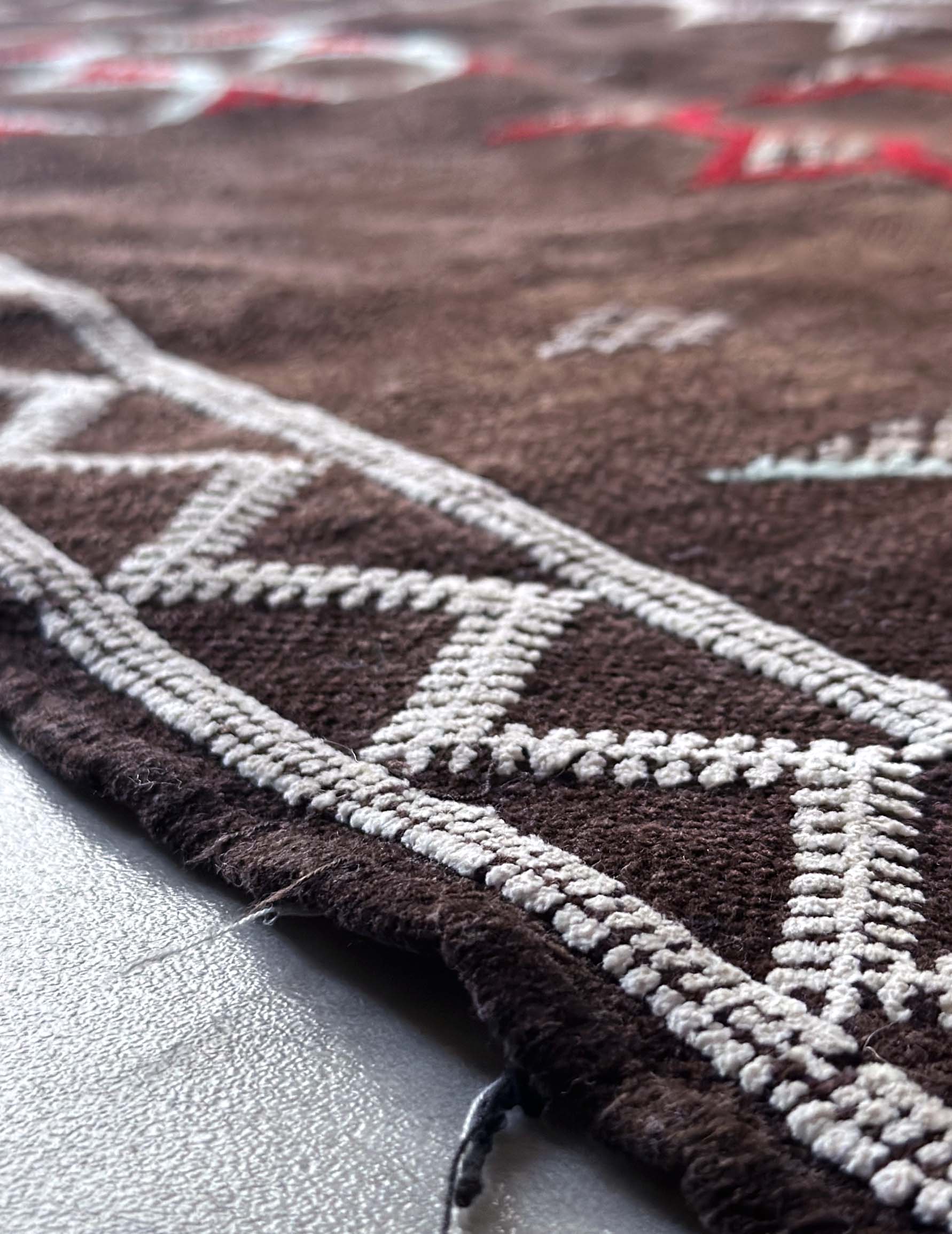 深みのあるダークブラウンを基調に、伝統的なベルベル文字やシンボルをあしらったデザインが印象的で、モダンでありながら民族的な温もりを感じられる一枚です。
