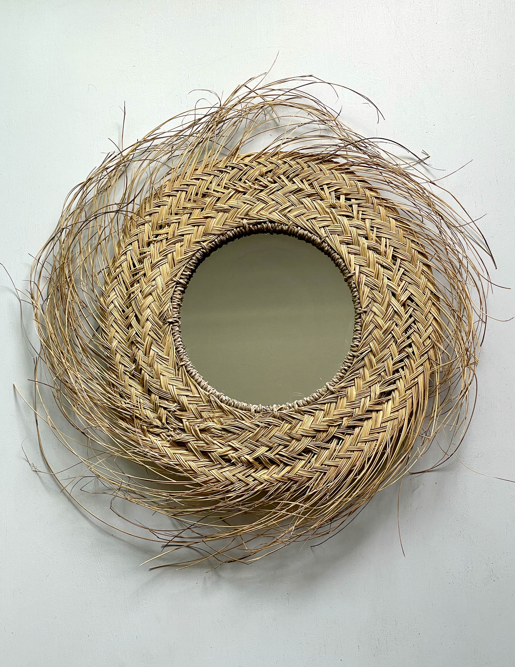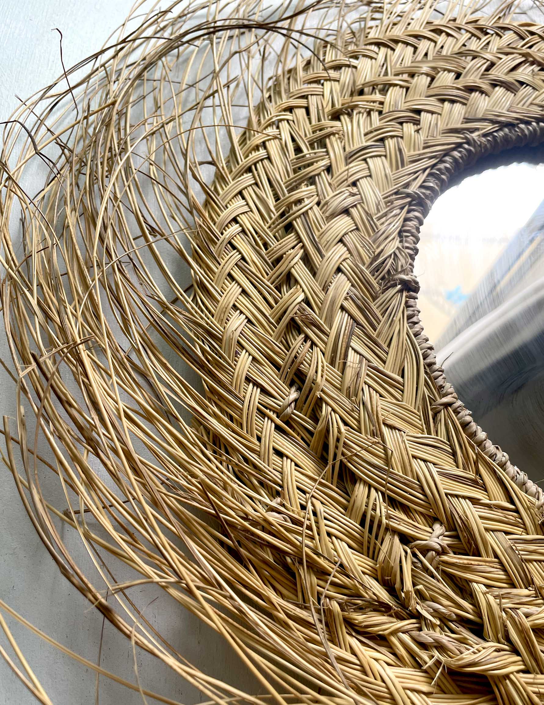 天然素材のラタンとストローで作れたハンドメイドのハンギングミラー。