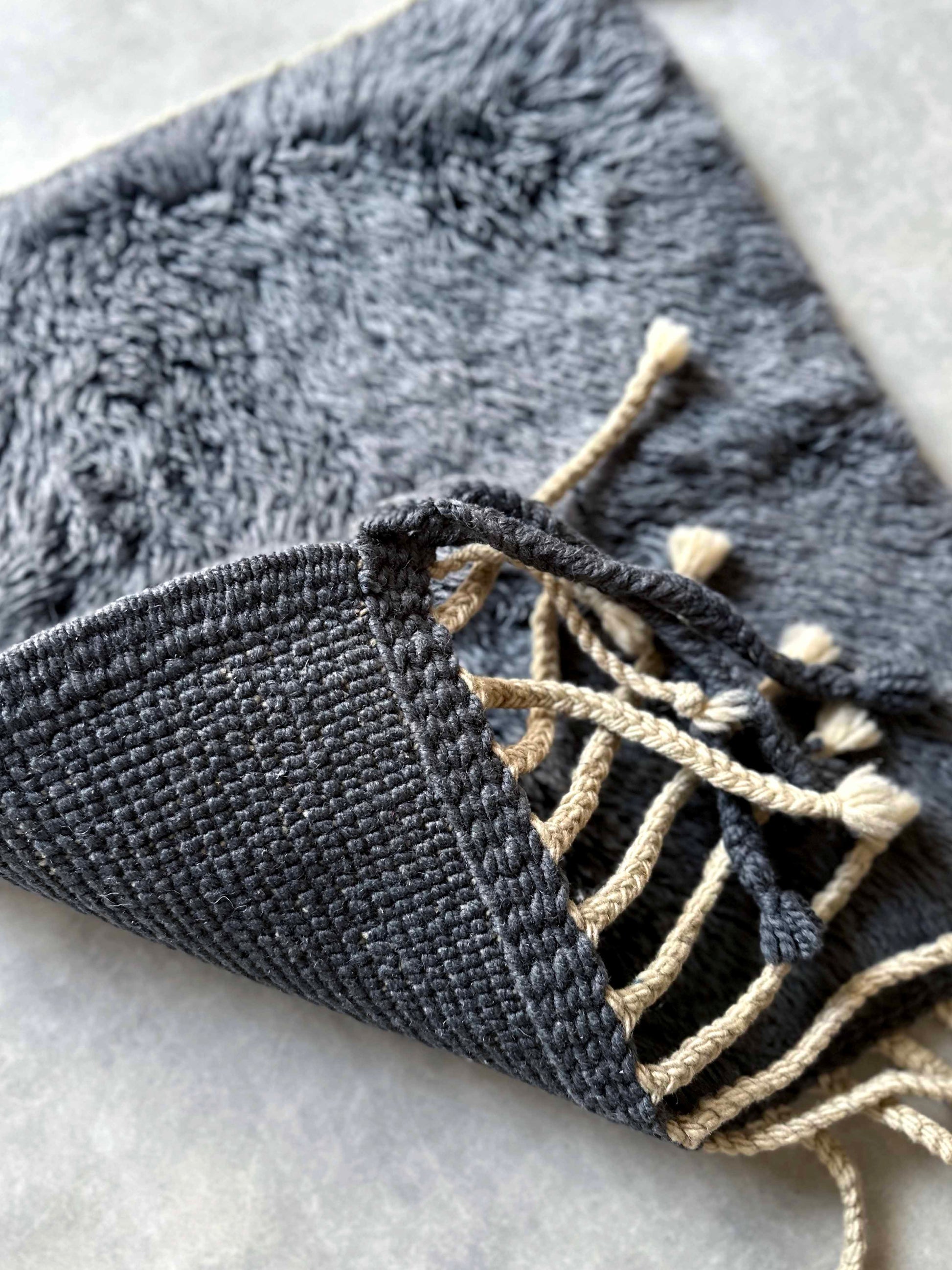 ・生産の性質上、ウールに他の色や植物の繊維が混じっている場合があります。検品の際に、除去できるものは取り除いていますが、手作業なので多少残っている場合がありますのでご了承ください。またピンセットを使うとラグを傷めずに取り除くことができます。