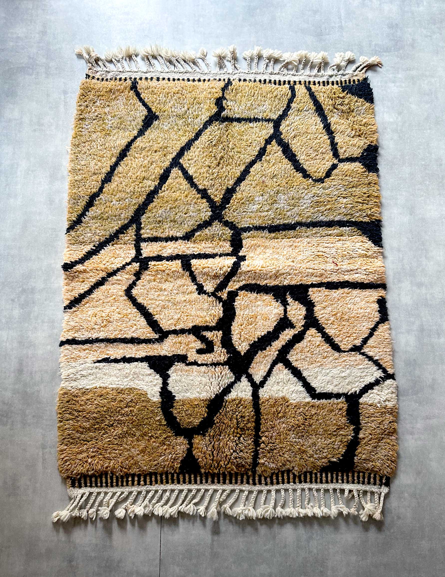 モロッコのアトラス山脈に住むベルベル人女性によって、一目一目しっかりと結びながら織らているハンドメイドのウールラグです。