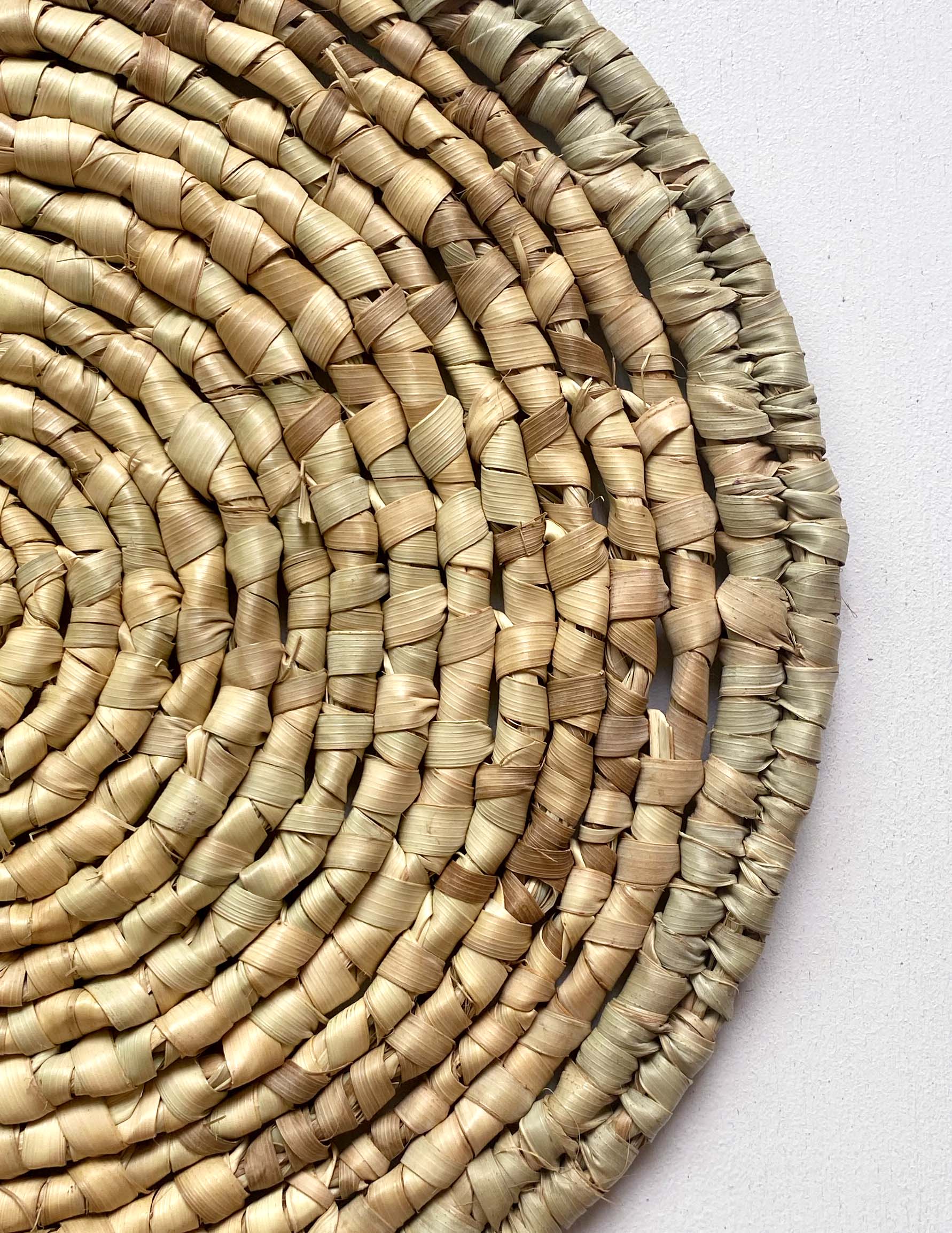 職人により、丈夫な葉で編まれた鍋敷です。