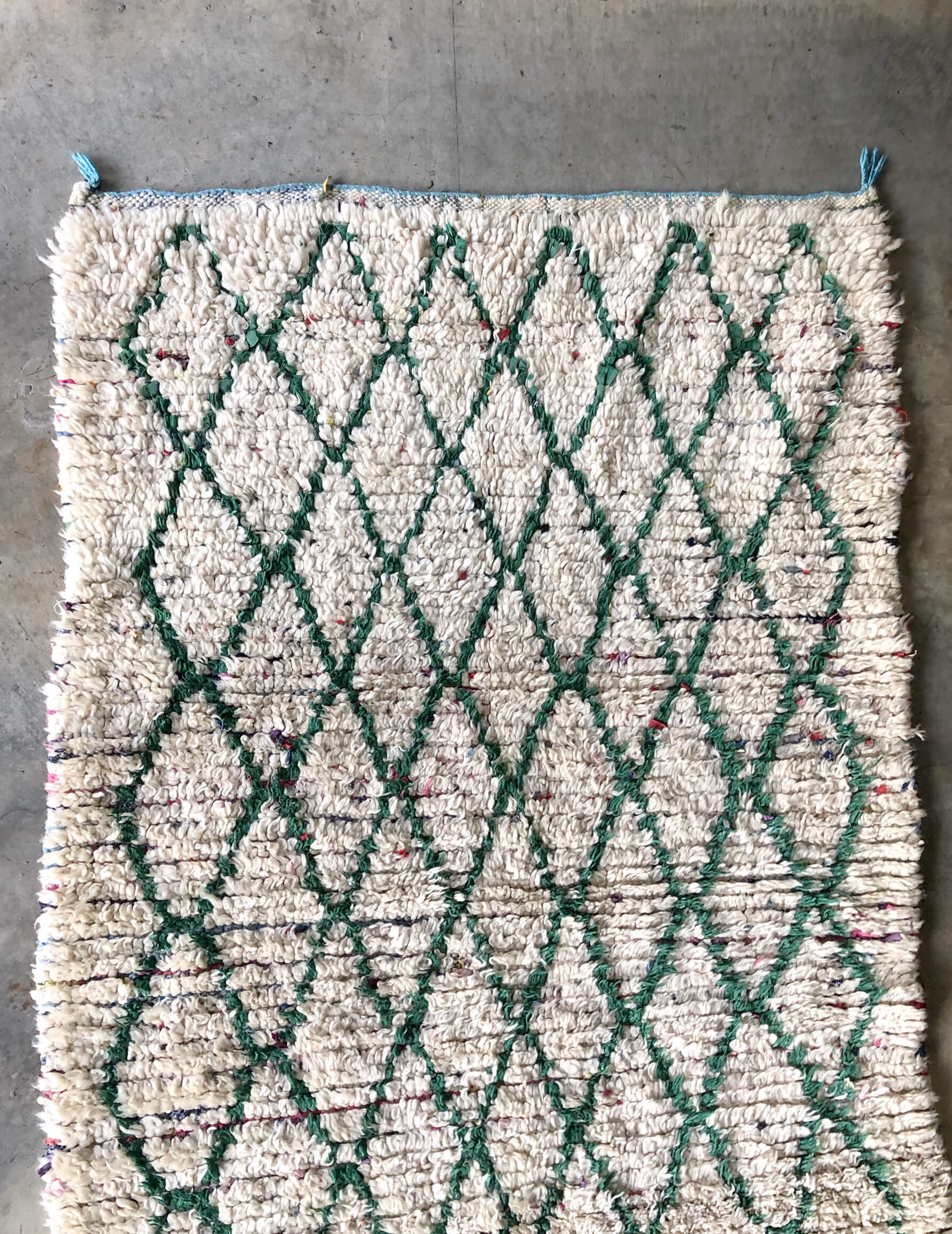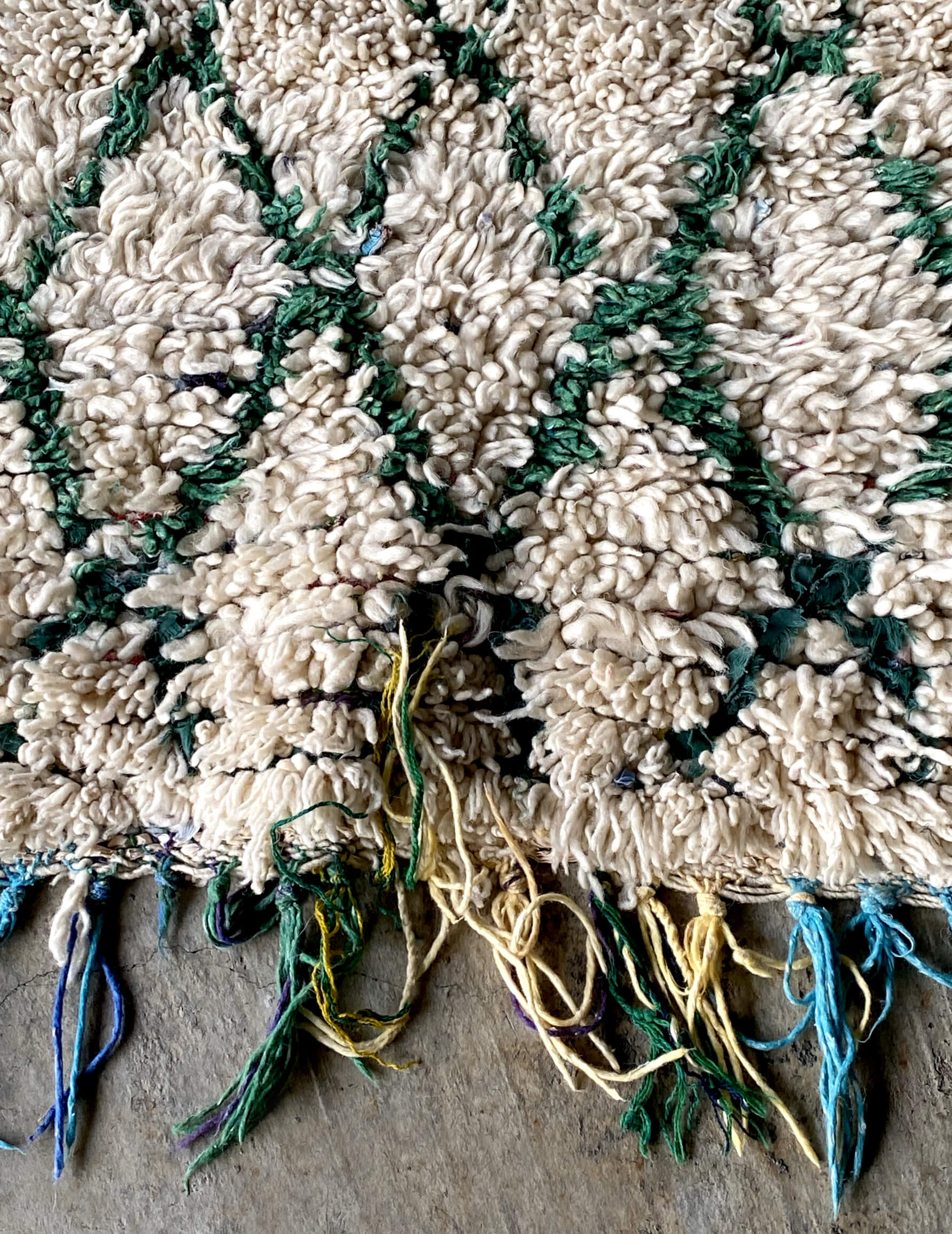 全てベルベル人女性により織られたハンドメイドのラグで、同じ物は1つとしてありません。地がボシャルウィットで編まれているため、ウールの隙間から見えるカラフルな色合いが心躍るデザインです。
