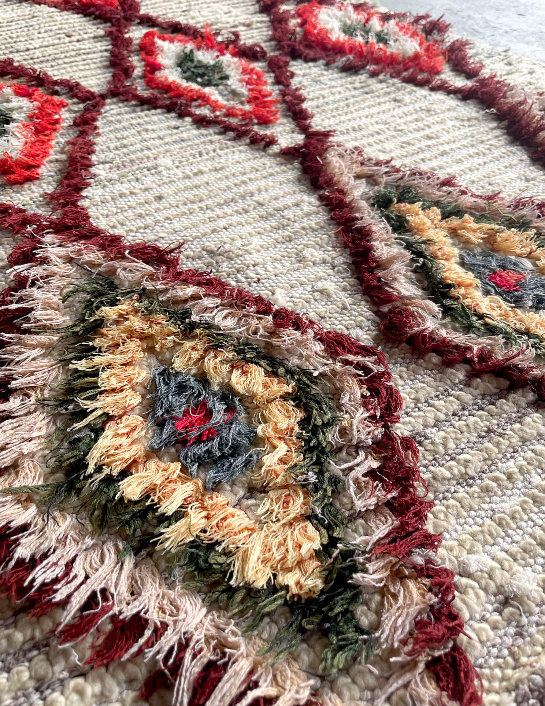 全てベルベル人女性により織られたハンドメイドのラグで、同じ物は1つとしてありません。織り目が詰まっていないため季節を問わずご使用いただけます。