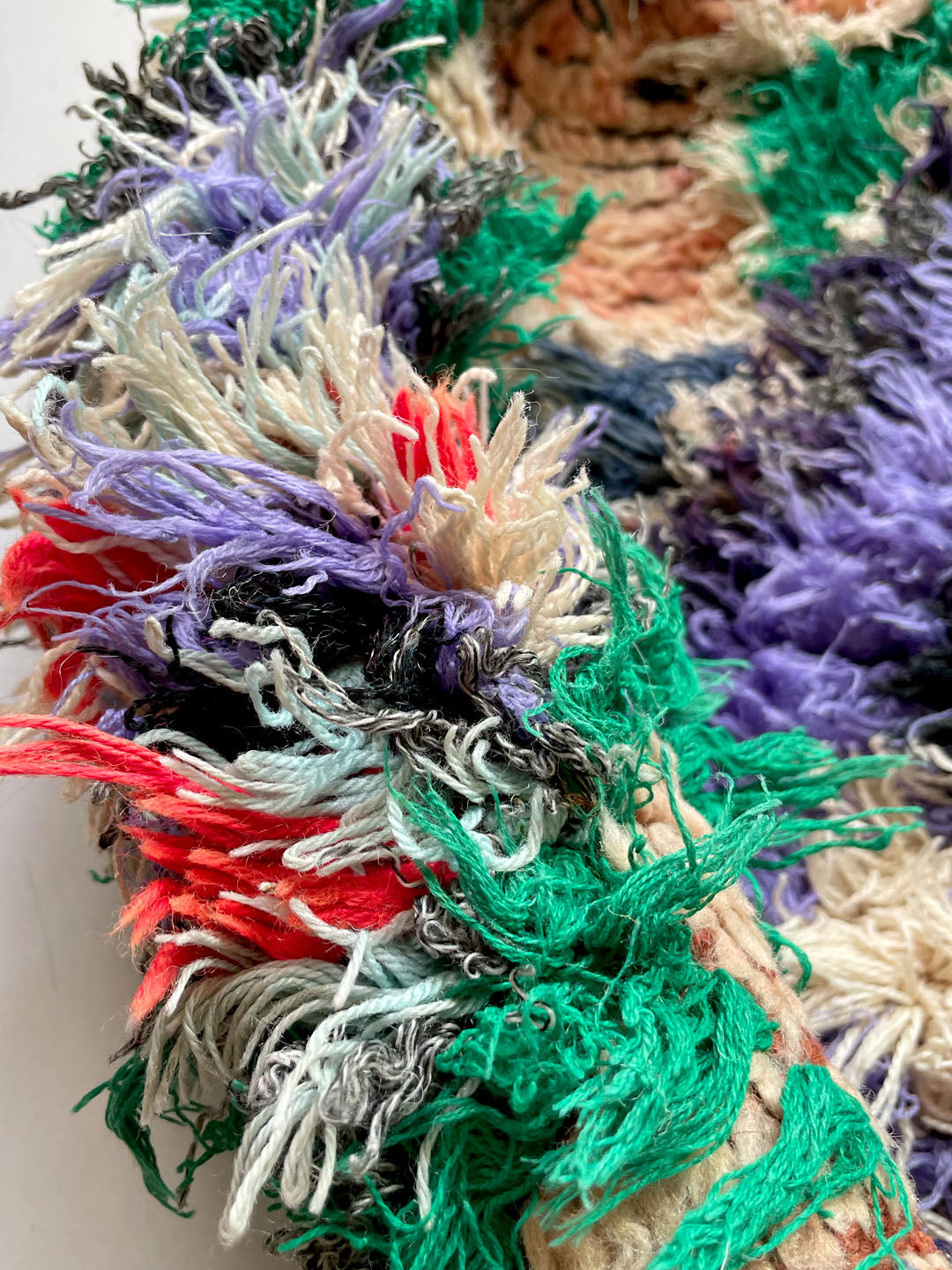 ブジャドプフはモロッコのアトラス山脈に住む、ベルベル人女性によって編まれた毛の短いウールラグを使用し作られたプフとなります。