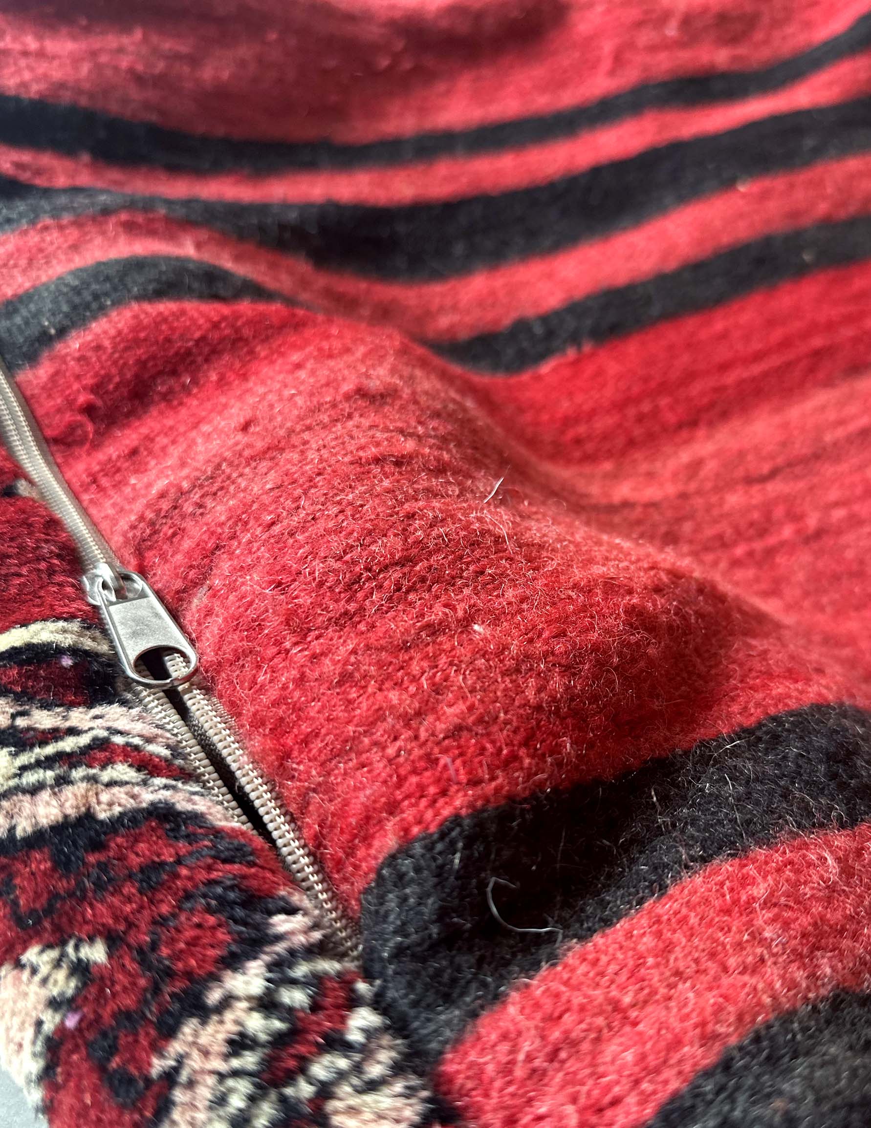 ベルベル人女性によって織られたハンドメイドのキリムラグを使用した、ウール製のプフです。