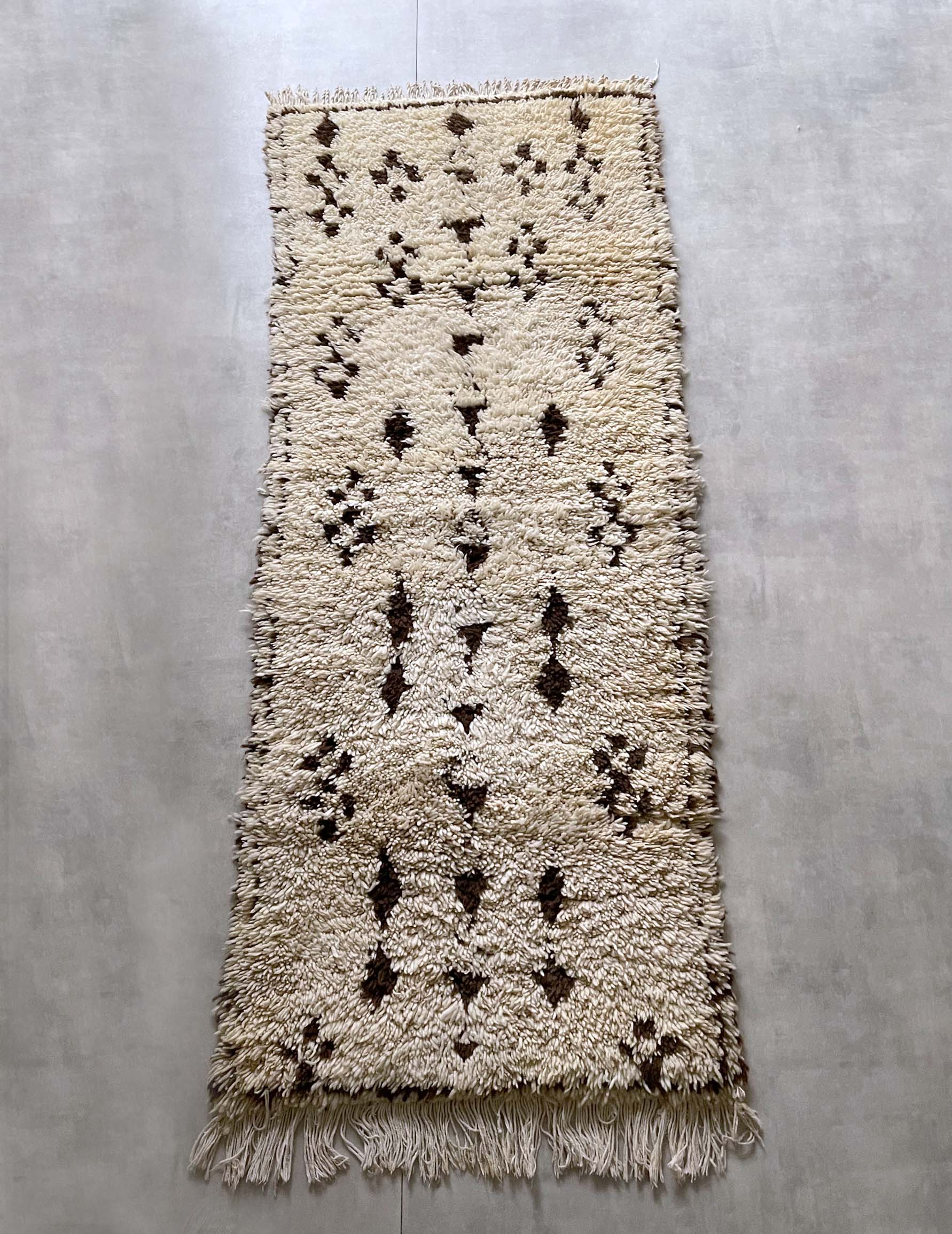 全てベルベル人女性により織られたハンドメイドのラグで、同じ物は1つとしてありません。織り目が詰まっていないため季節を問わずご使用いただけます。