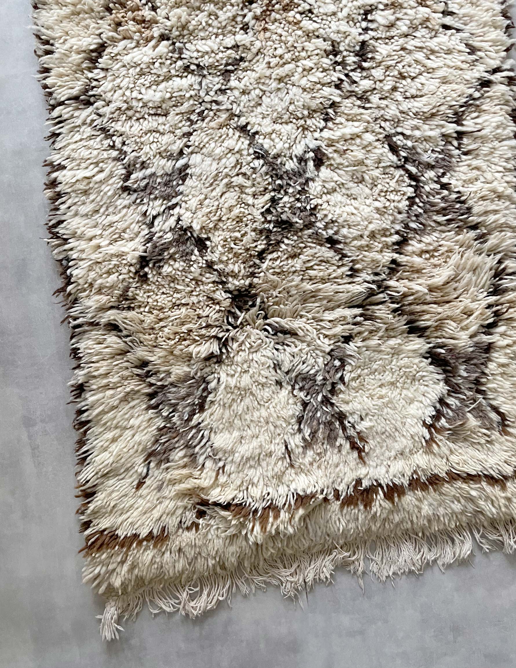 全てベルベル人女性により織られたハンドメイドのラグで、同じ物は1つとしてありません。織り目が詰まっていないため季節を問わずご使用いただけます。
