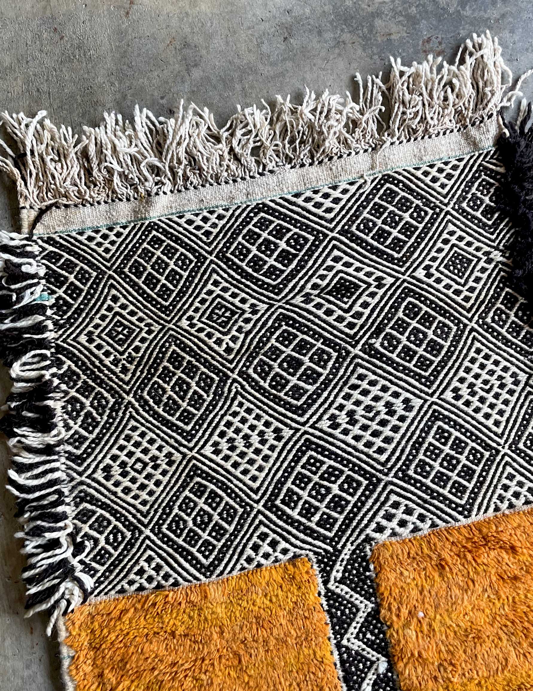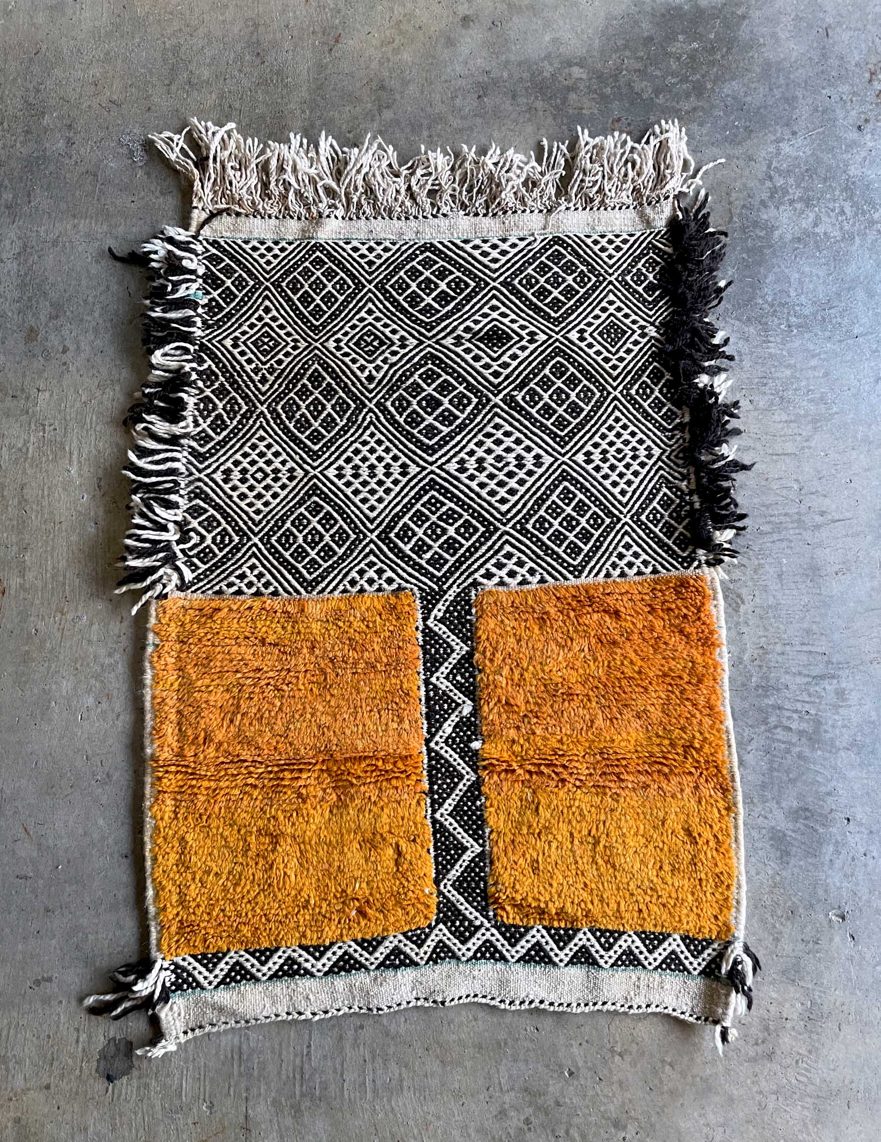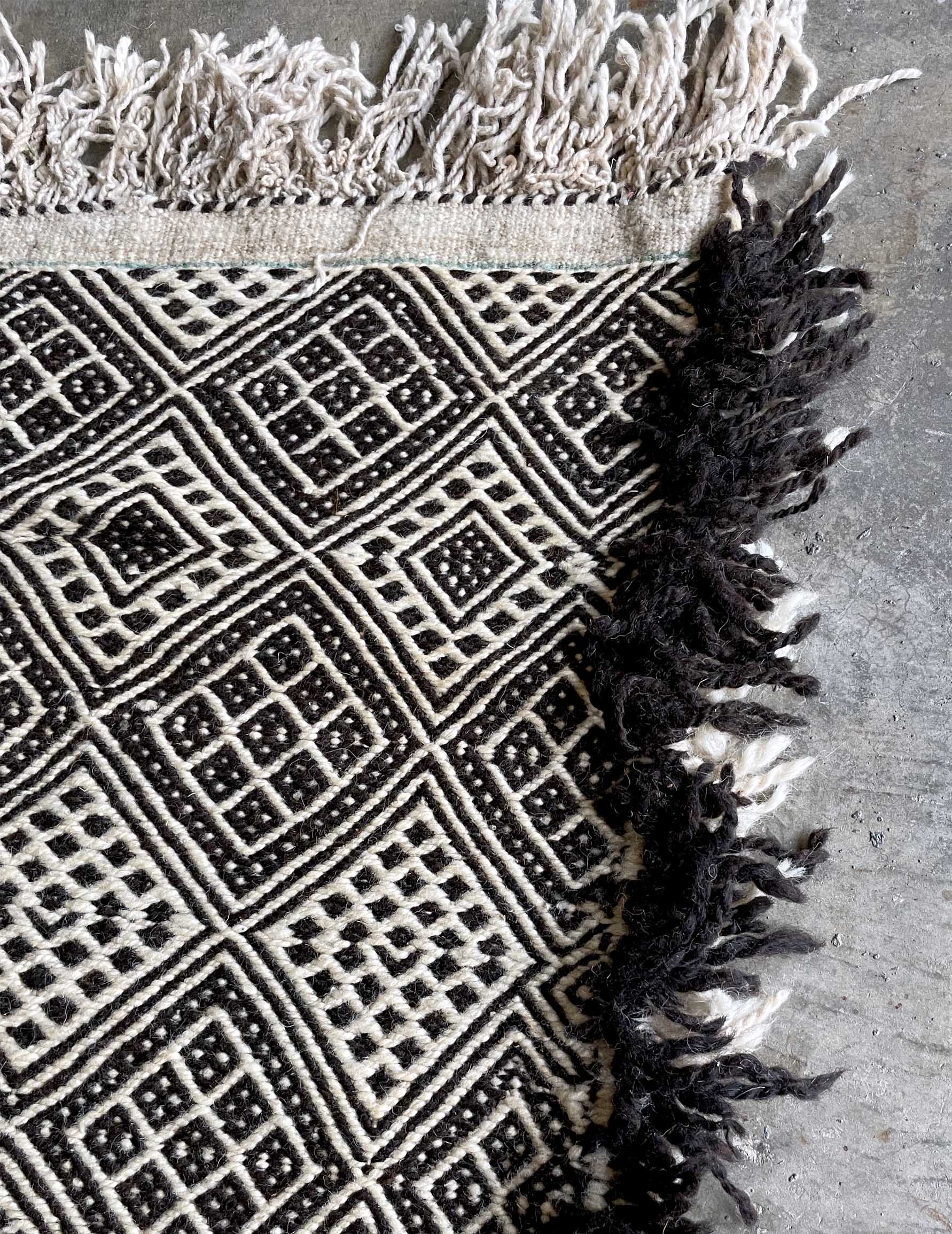 モロッコの南に位置する、サハラのベルベル人女性によりウールで丁寧に編まれた平織タイプのラグ。