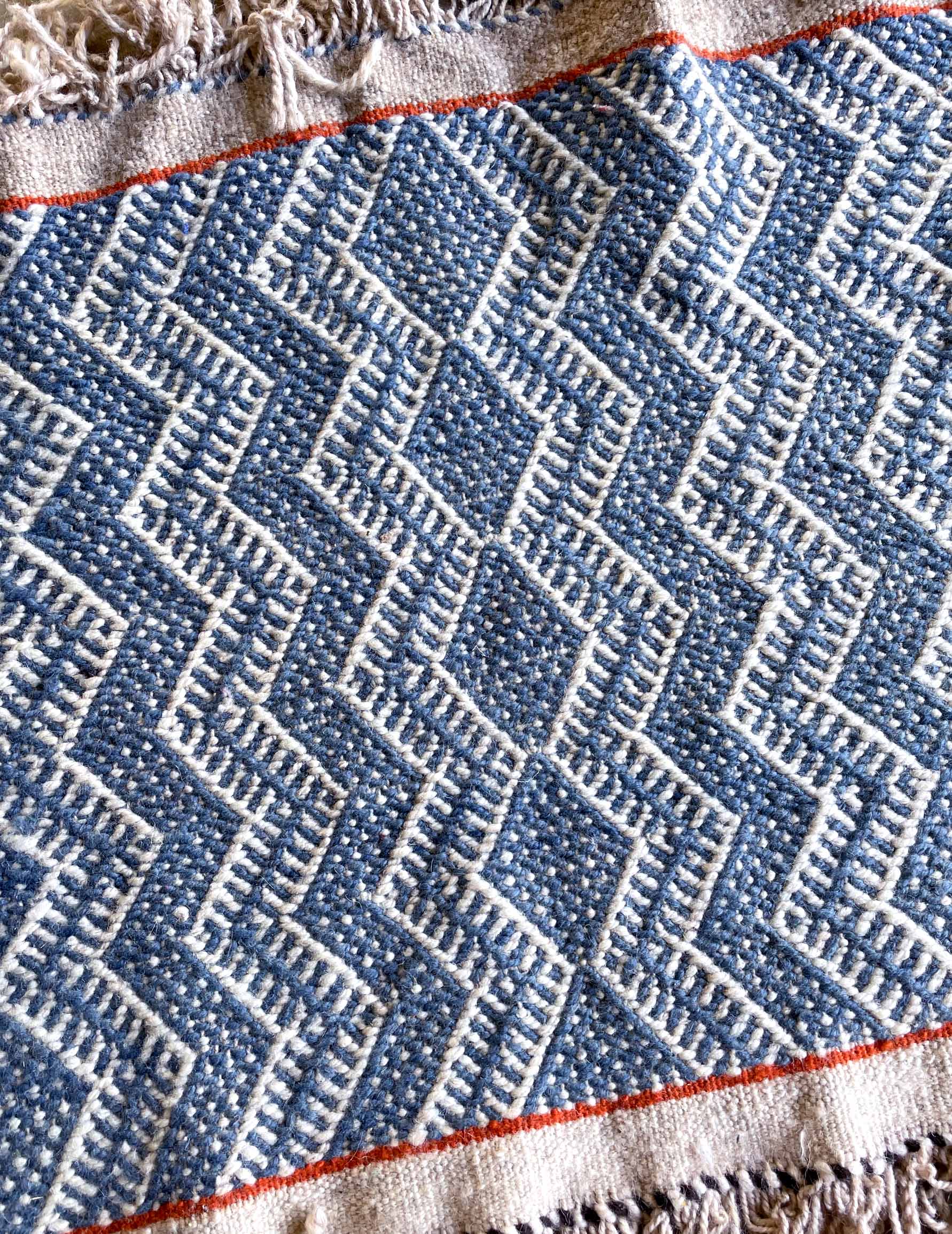 モロッコの南に位置する、サハラのベルベル人女性によりウールで丁寧に編まれた平織タイプのラグ。
