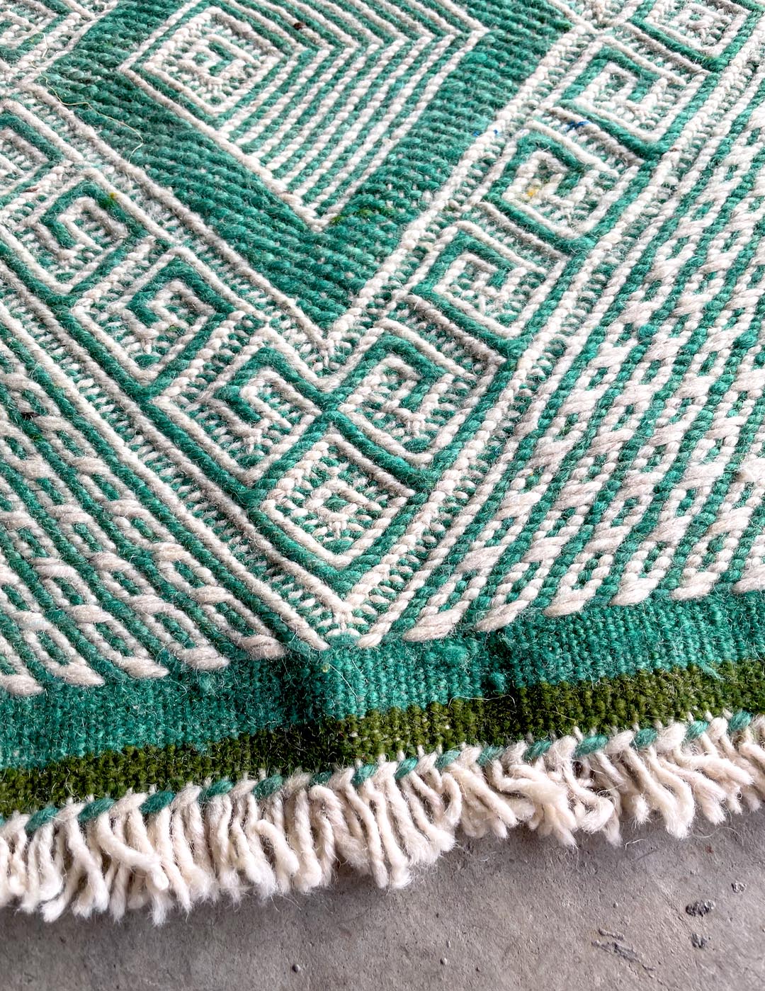 モロッコの南に位置する、サハラのベルベル人女性によりウールで丁寧に編まれた平織タイプのラグ。