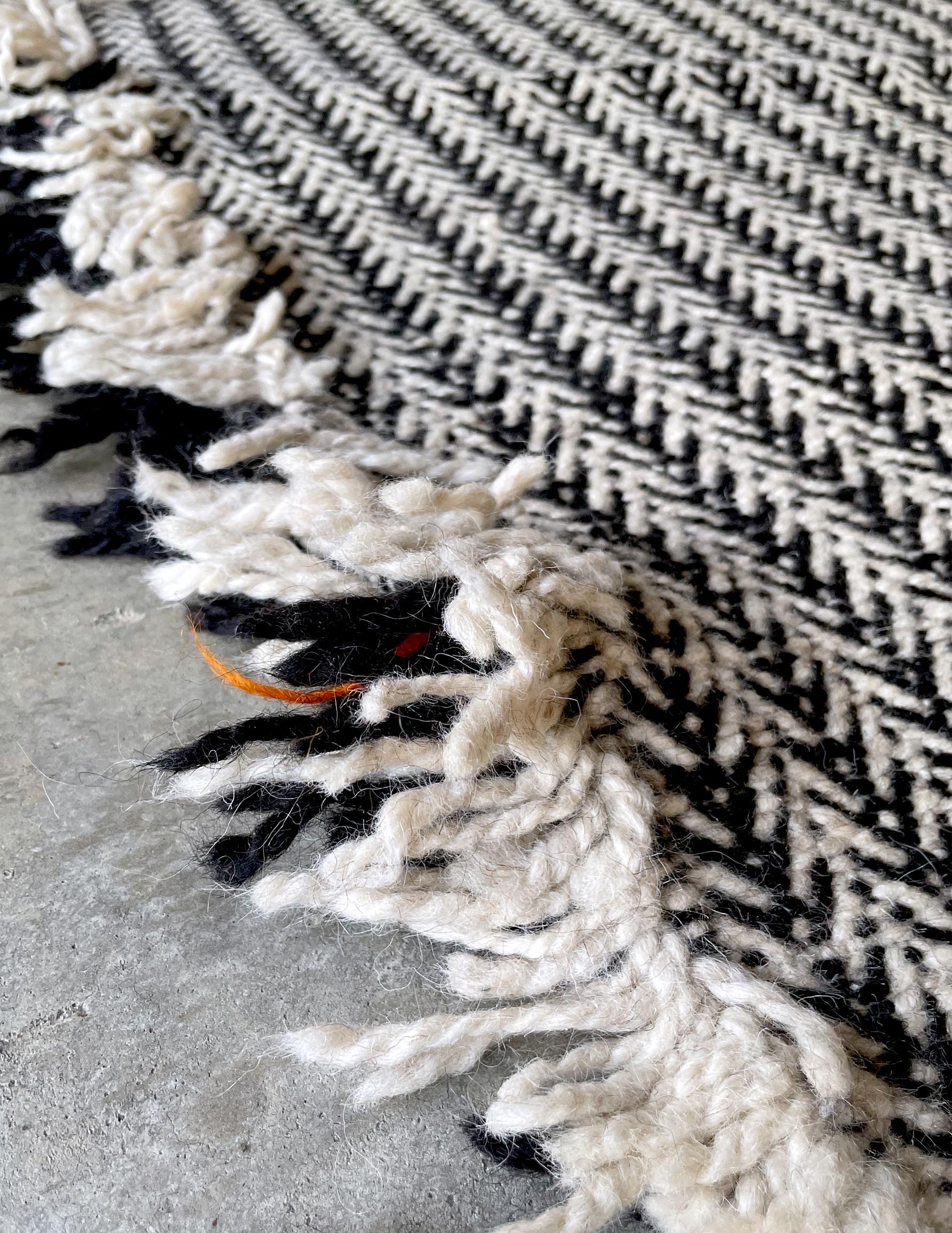 ・生産の性質上、ウールに他の色や植物の繊維が混じっている場合があります。検品の際に、除去できるものは取り除いていますが、手作業なので多少残っている場合がありますのでご了承ください。またピンセットを使うとラグを傷めずに取り除くことができます。